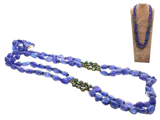 1347.66 TCW TANZANITE, EMERALD & DIAMOND NECKLACE 18K GOLD