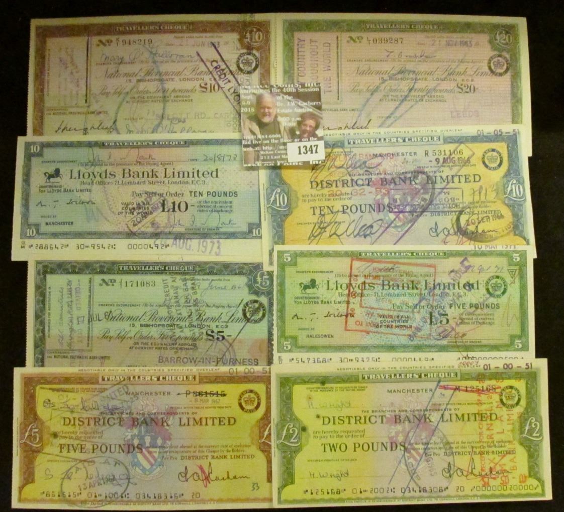(8) Different British Travellers' Cheque. All cancelled and near Crisp Uncirculated.
