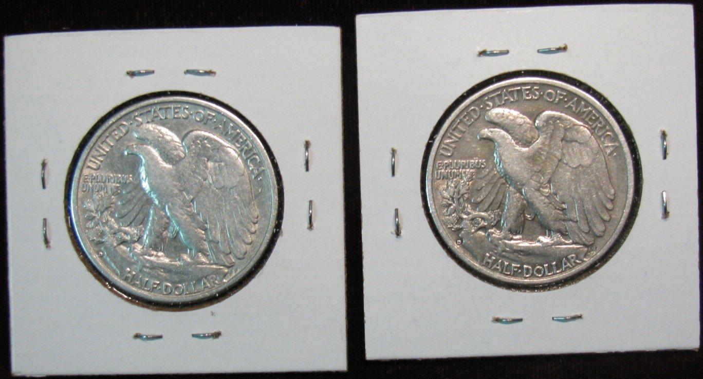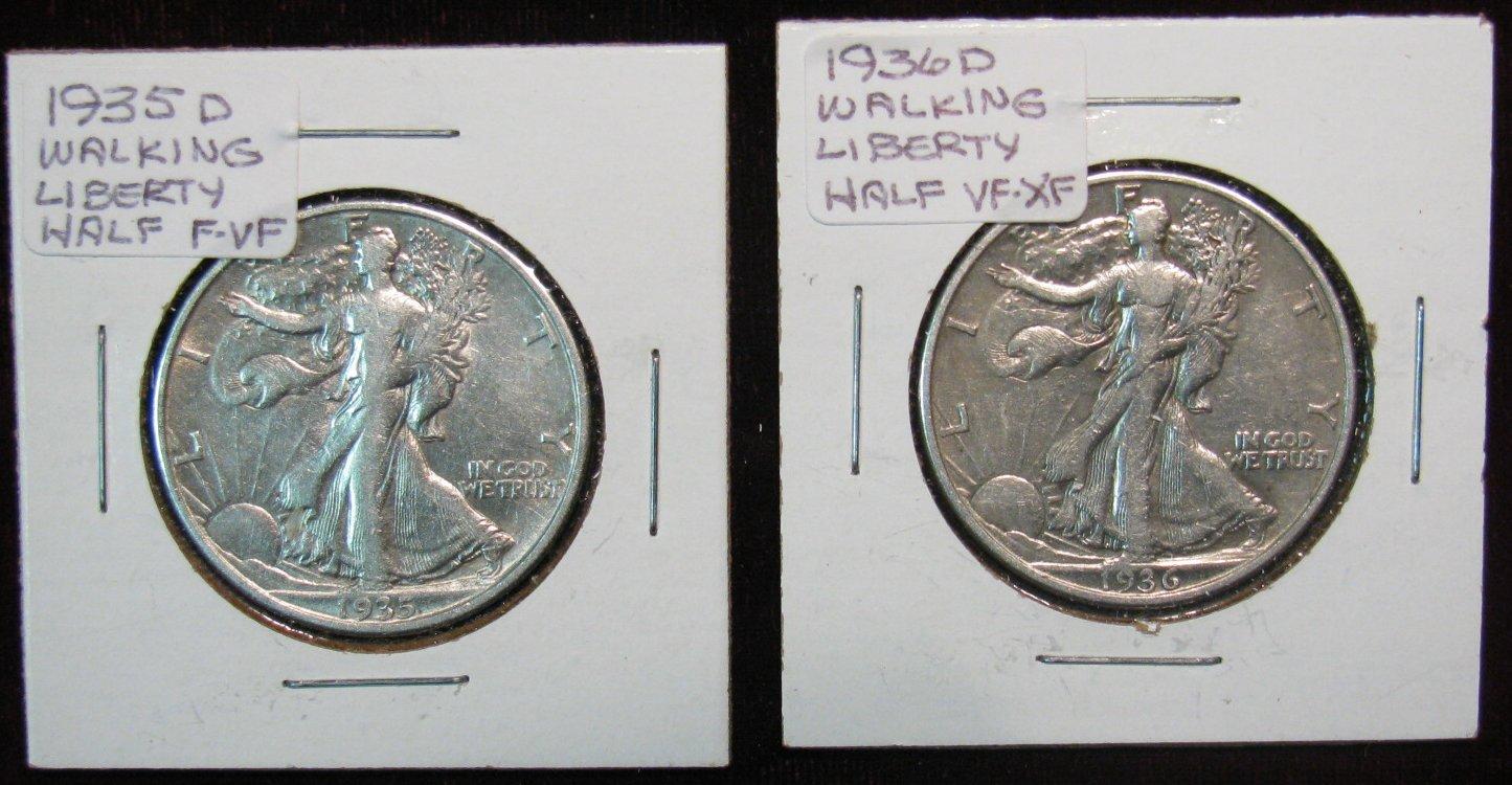 1348. 1935D F-VF, 1936D VF-EF Walking Liberty Half Dollars.