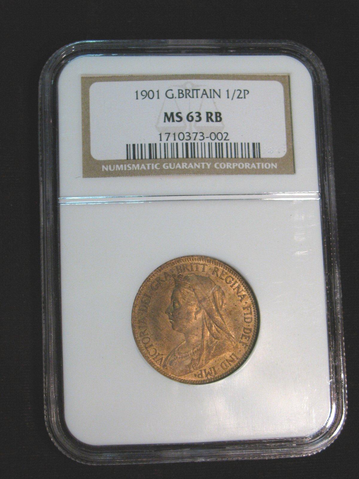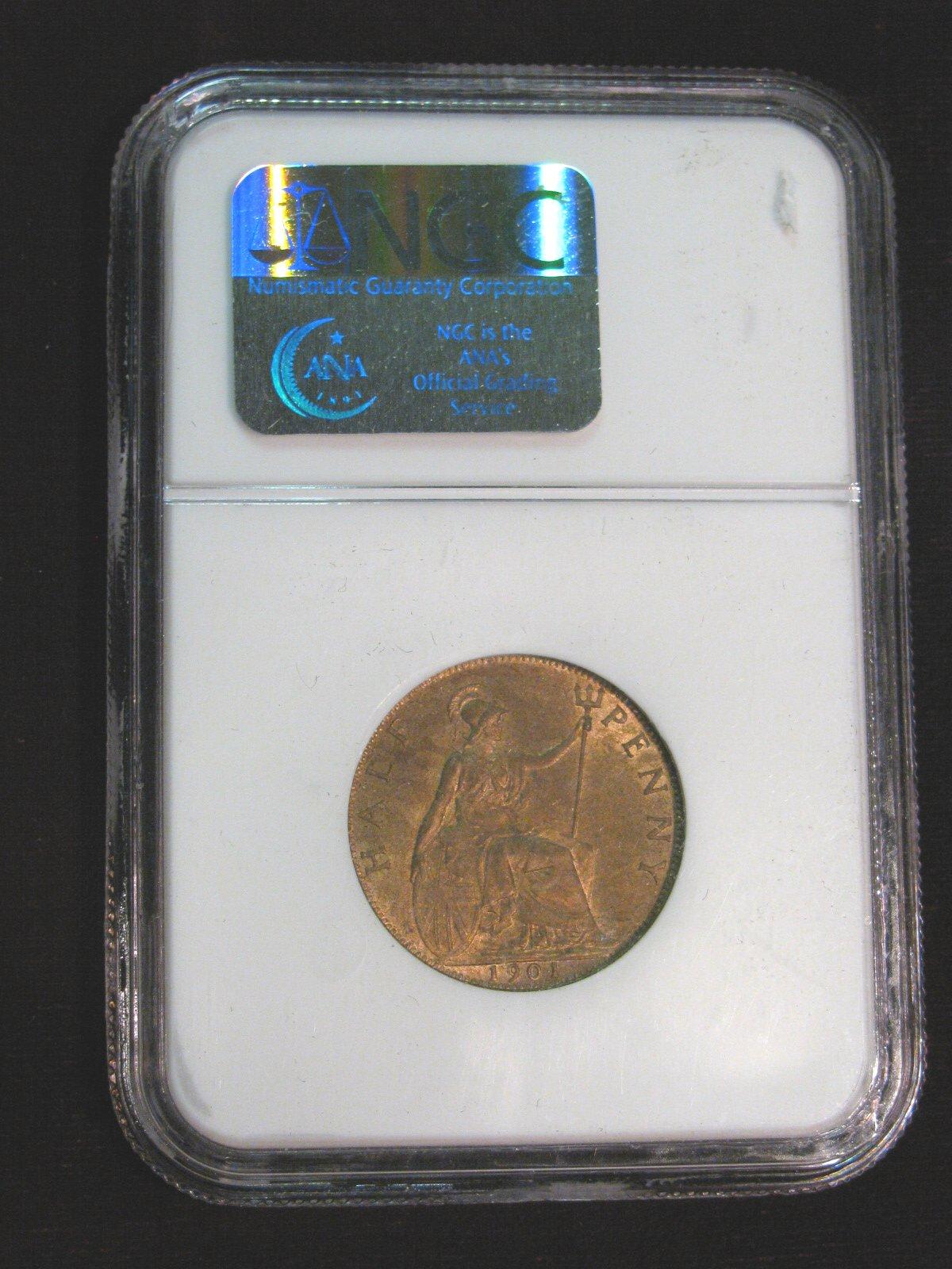 1349. 1901 Great Britain Half Penny. NGC slabbed MS 63 RB