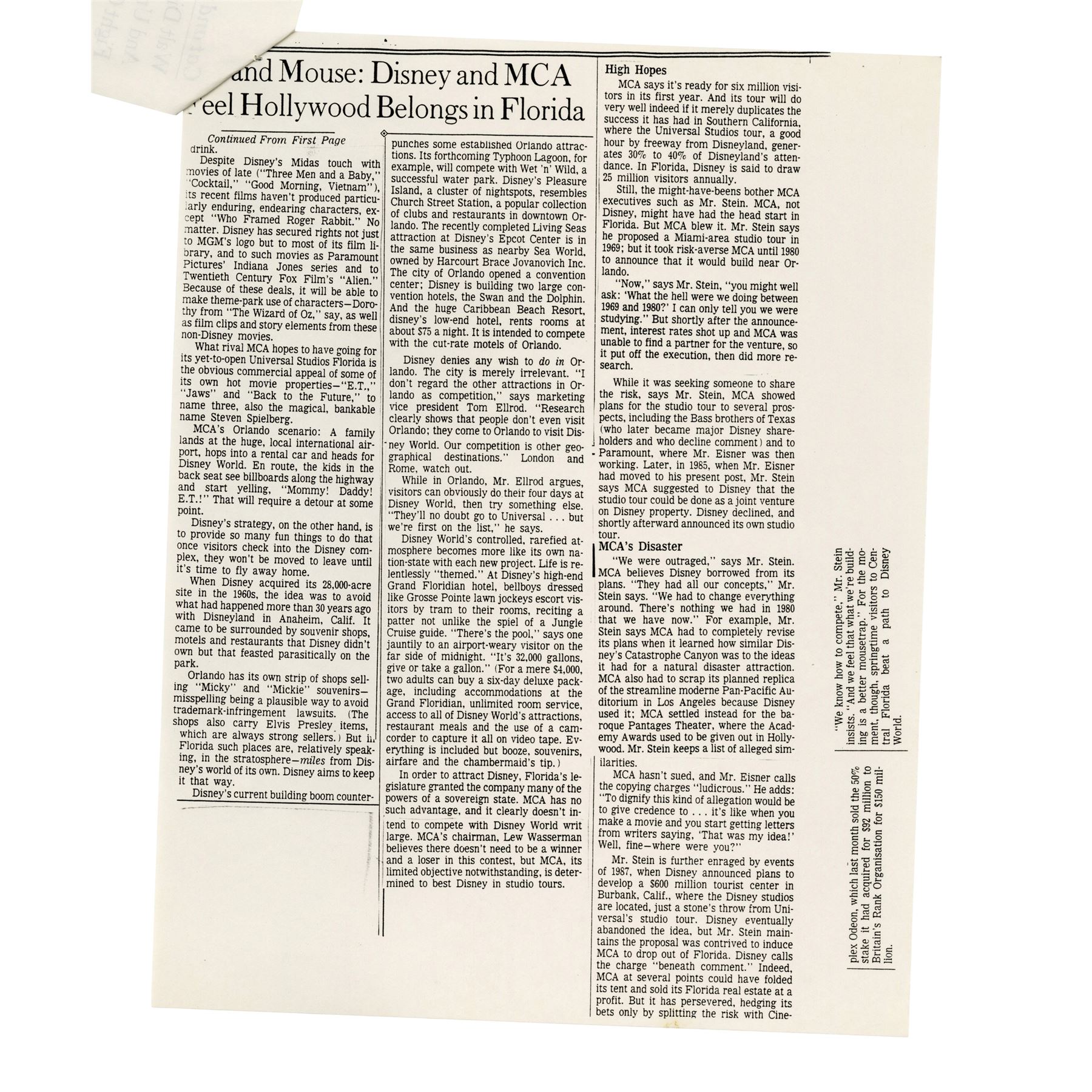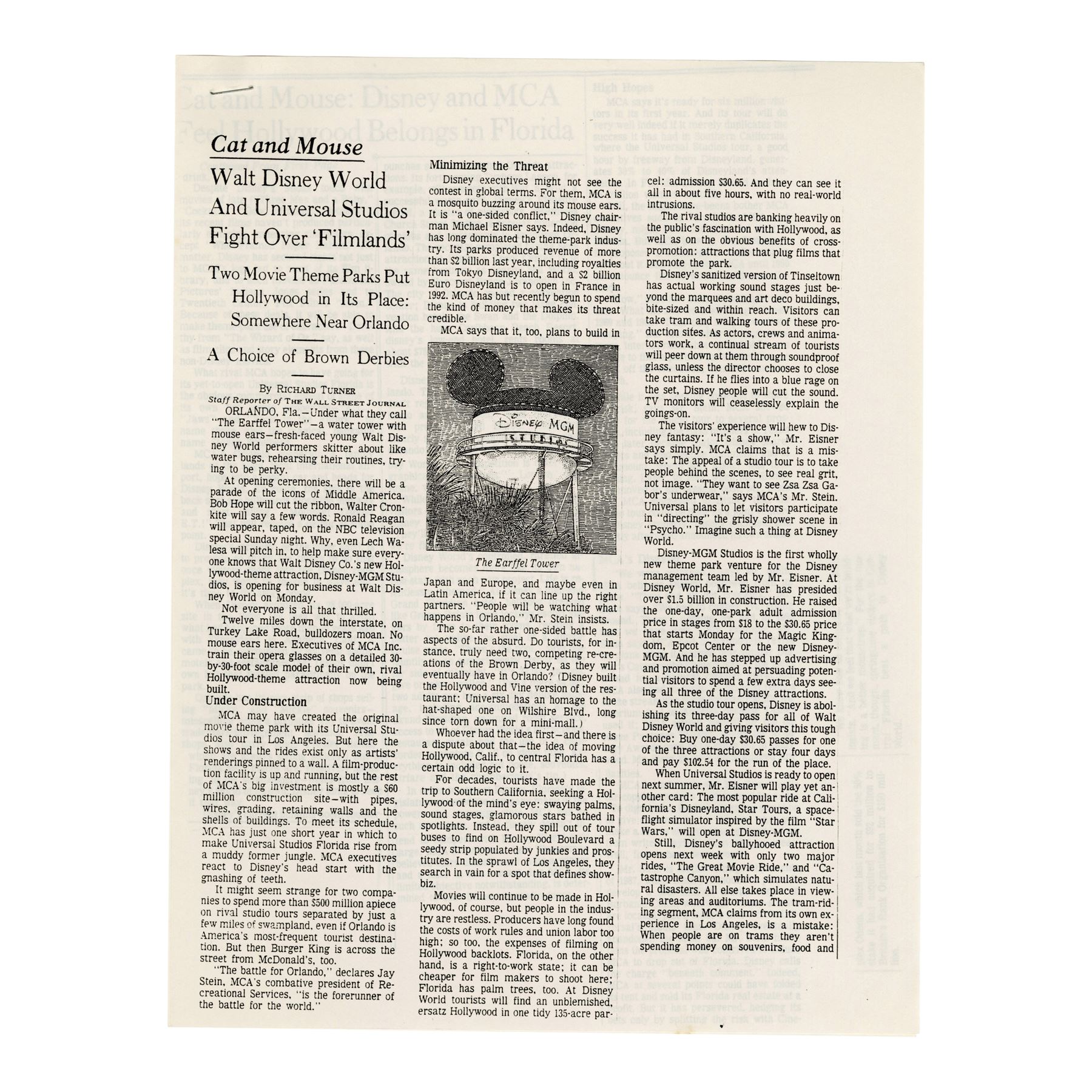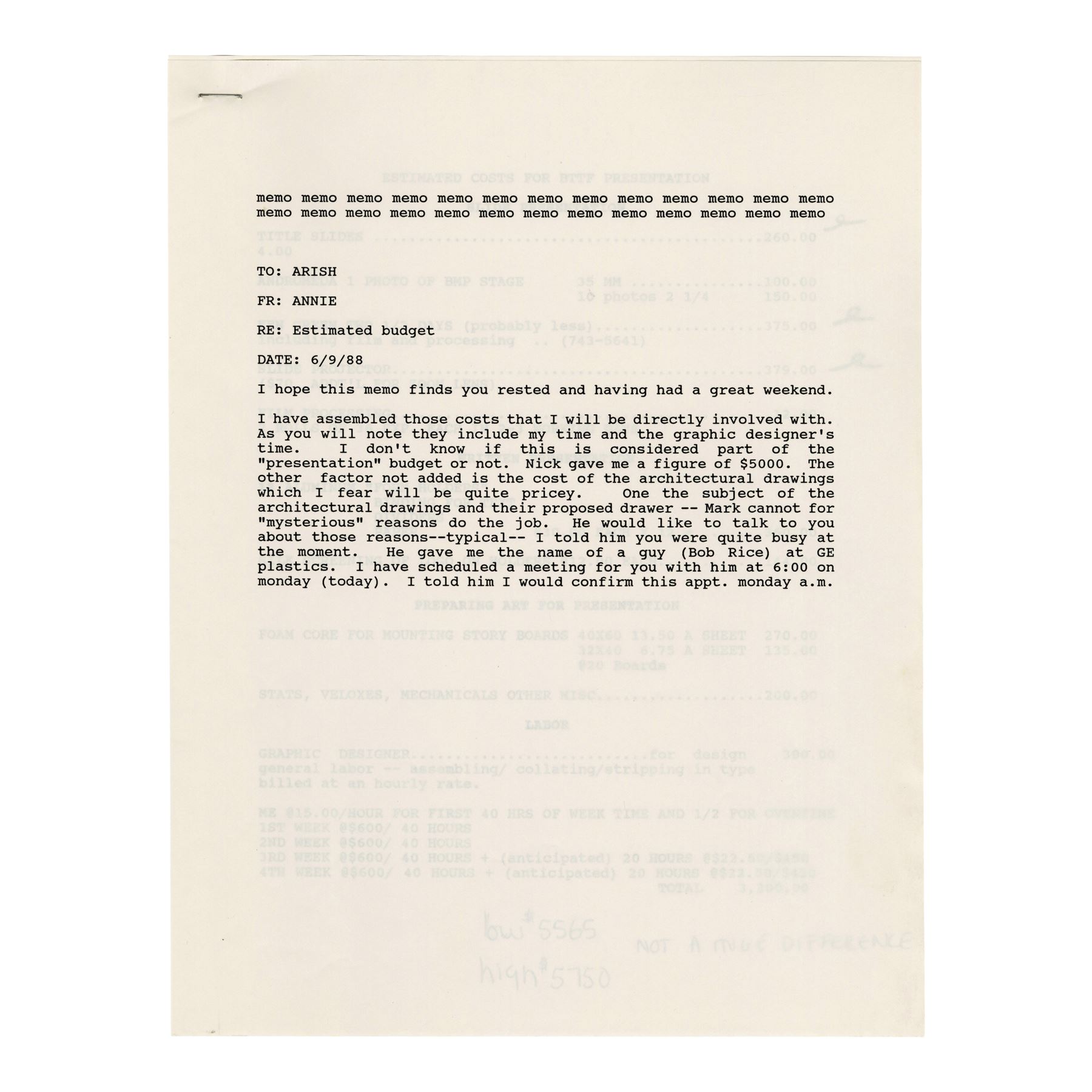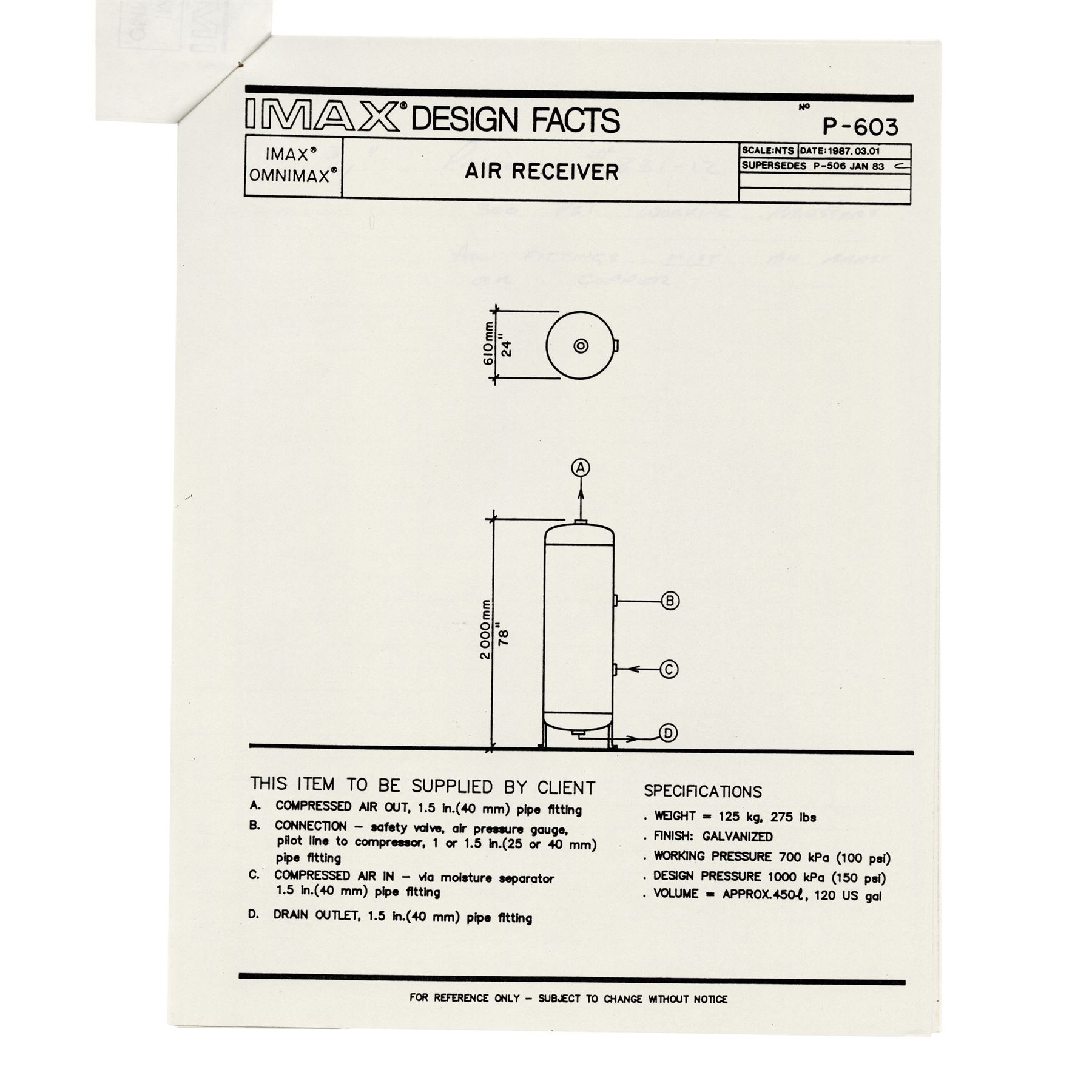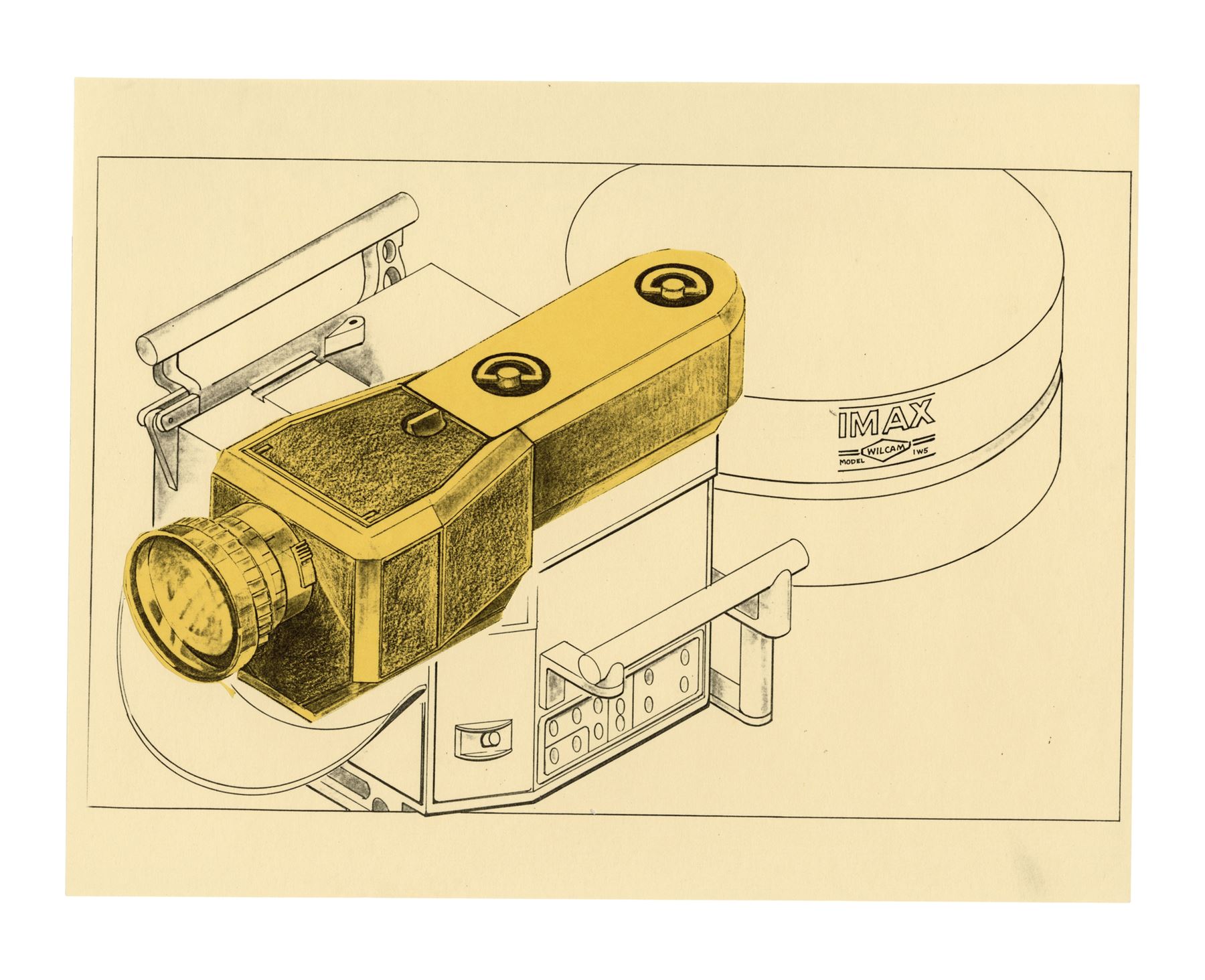 This lot comes from the collection of special photographic effects artist Douglas Trumbull. Created by production designer and art director Robert U. Taylor, it features 29 printed pages of effects storyboards depicting both the desire shot and the behind-the-scenes method for accomplishing it; eight printed pages of camera designs, including designs for an IMAX "Wilcam", with two camera design cut-outs and one hand-drawn camera component sketch in graphite on tracing paper; one manila folder marked "BIOS" with Trumbull's two-page biography, printed articles on Trumbull and Walt Disney World against Universal Studios; one manila folder marked "BUDGET" with two pages of typed and handwritten notes; and one manila folder labeled "STAGE A" with four pages of typed and handwritten notes and hand-drawn concept designs. This lot exhibits discoloration and torn edges. Dimensions: (largest) 11" x 17" (28 cm x 43.25 cm)