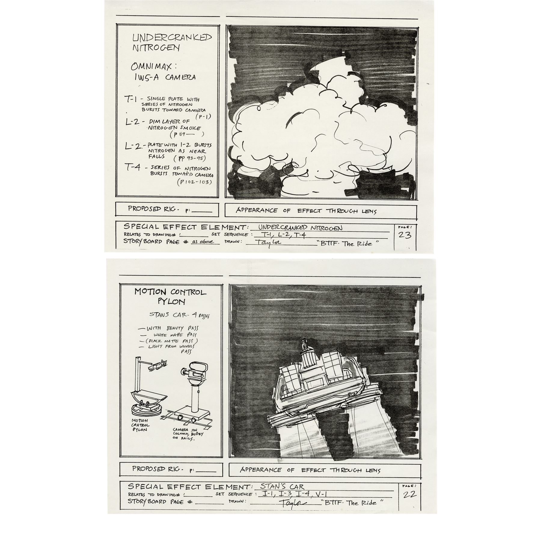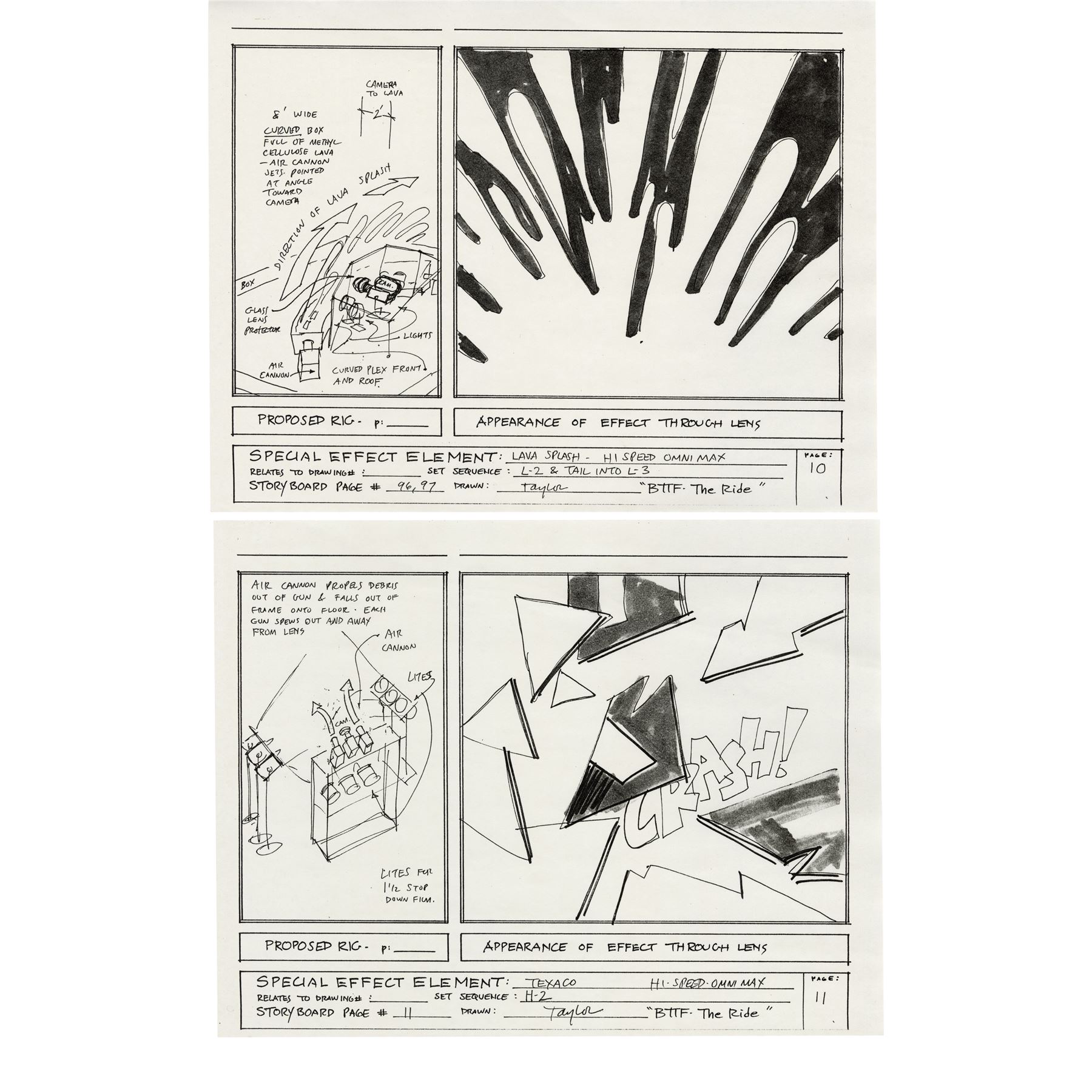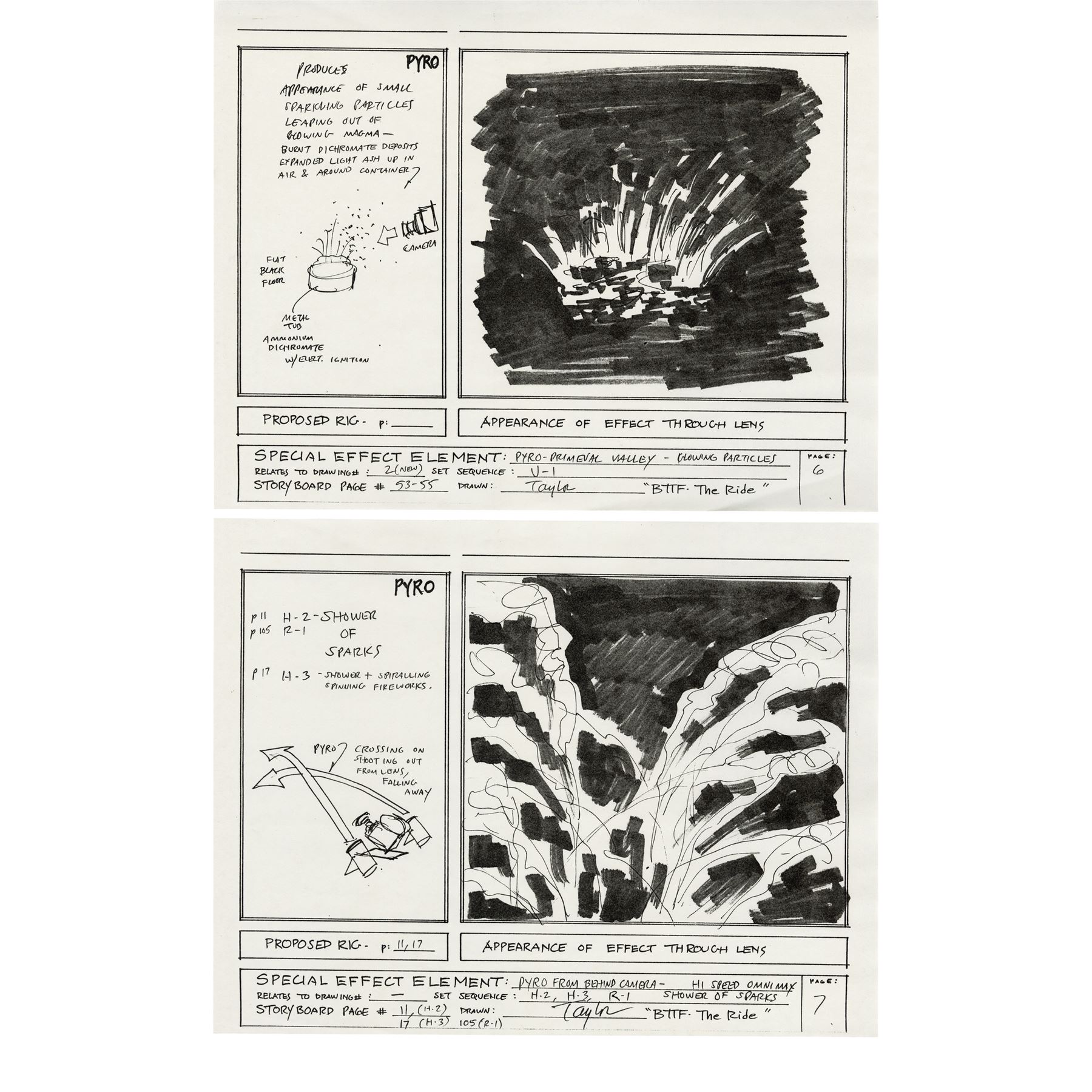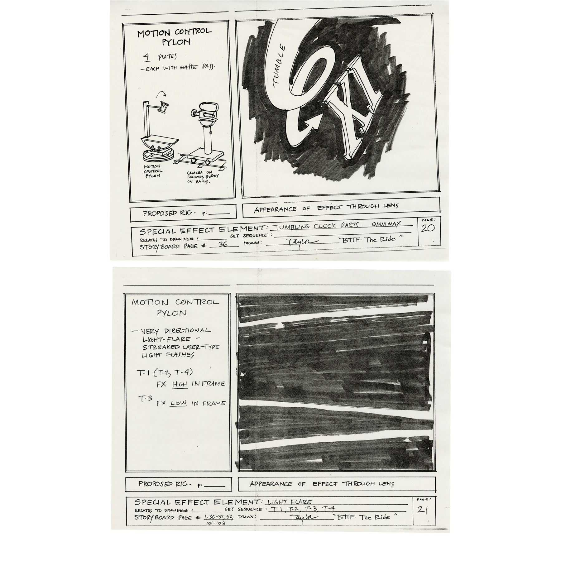 BACK TO THE FUTURE: THE RIDE (1991-2007) - Douglas Trumbull Collection: Technical Drawings, Effects Storyboards, and Paperwork - Technical drawings, effects storyboards, and paperwork from the Back to the Future: The Ride at Universal Orlando theme park. Based on the Back to the Future films, the ride serves as a mini-sequel to Back to the Future Part III.