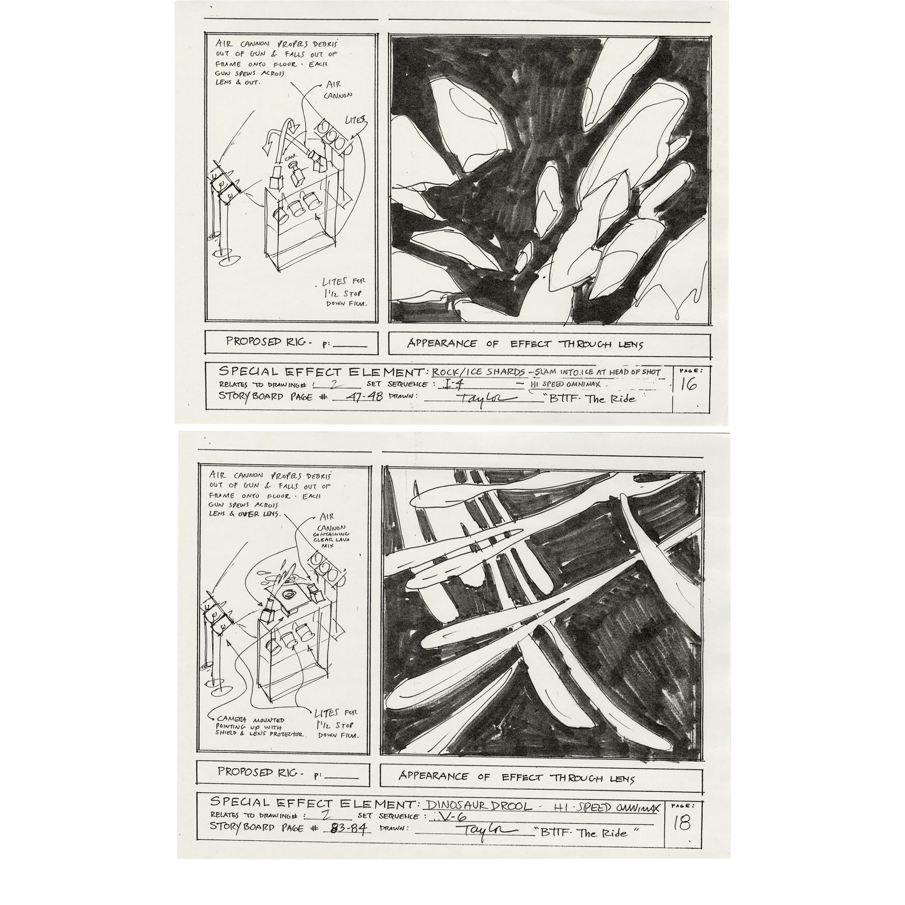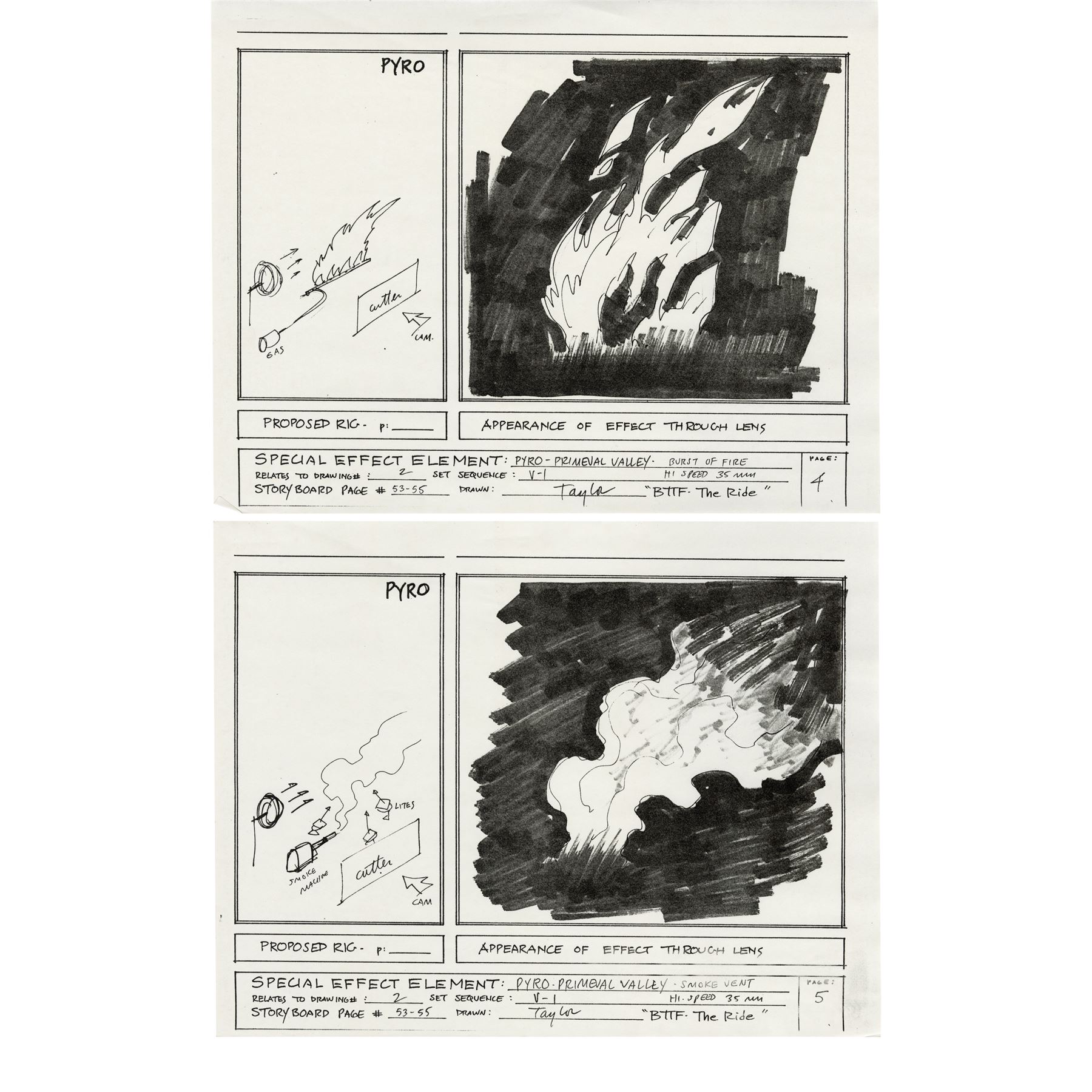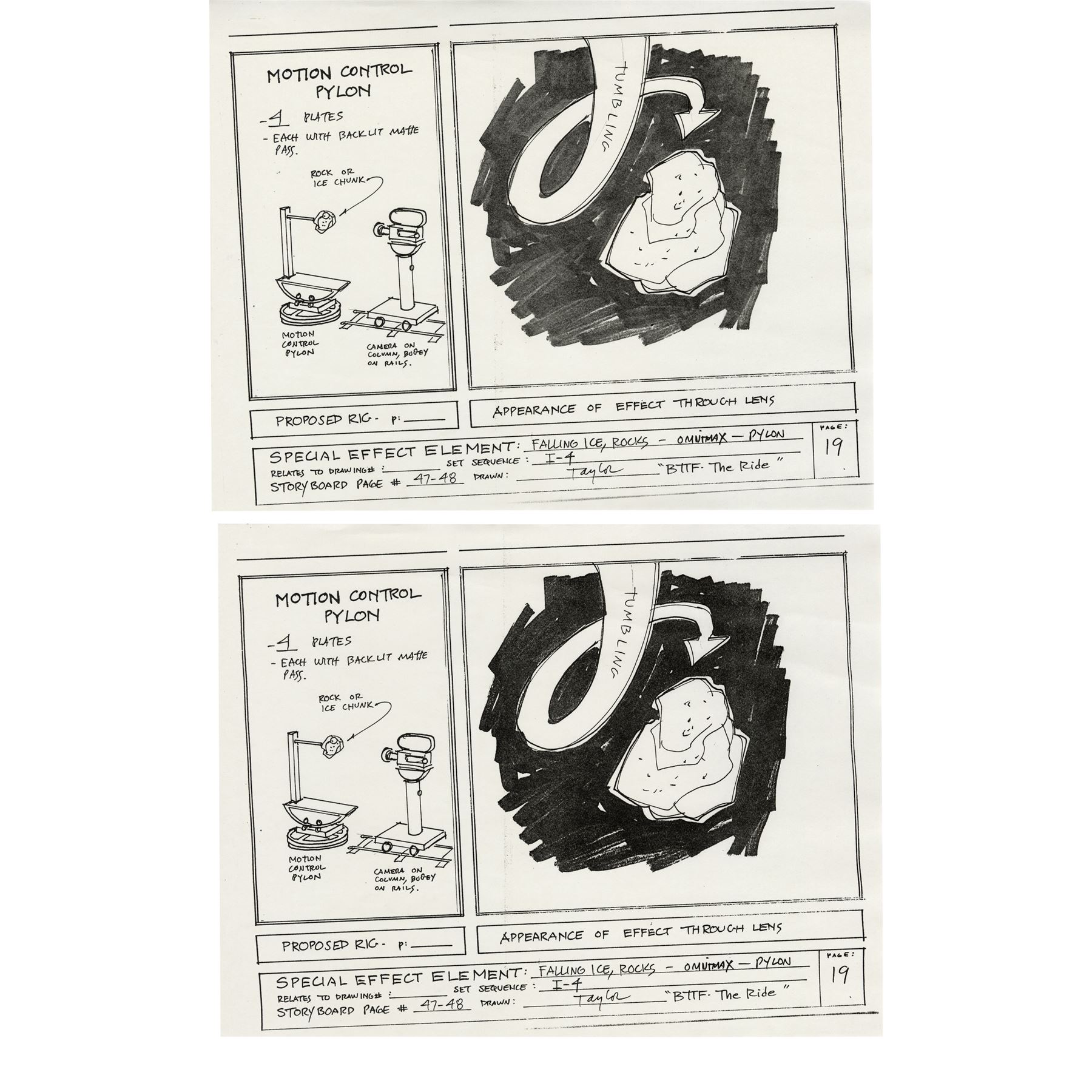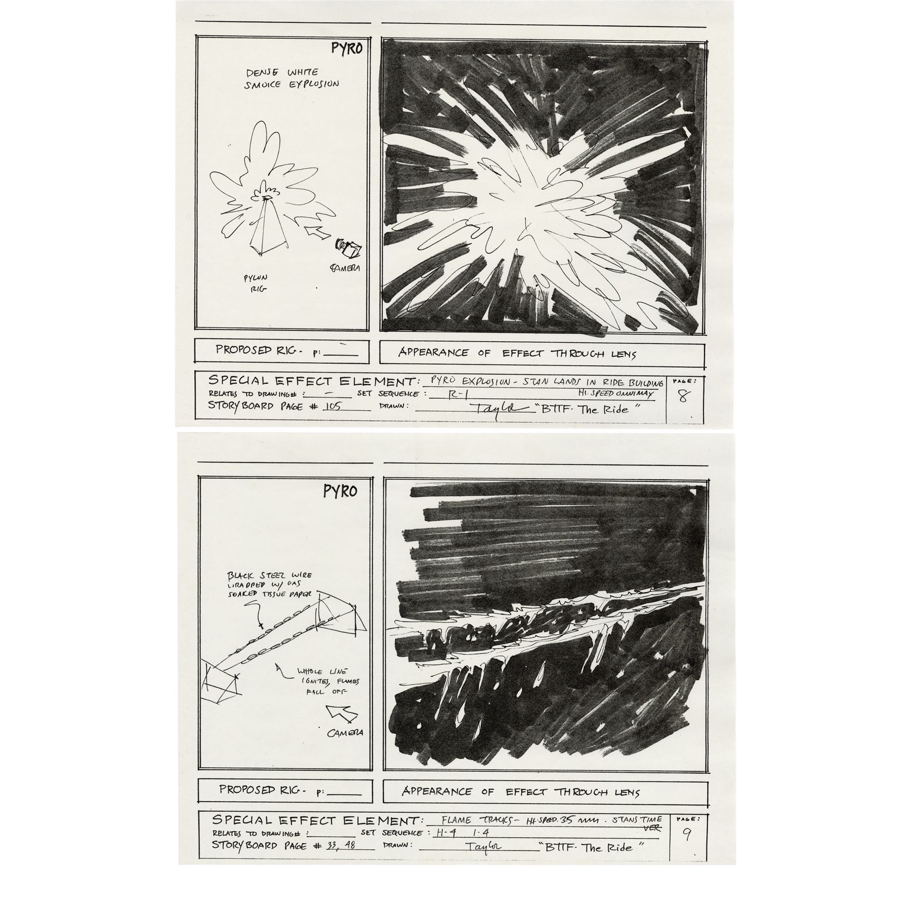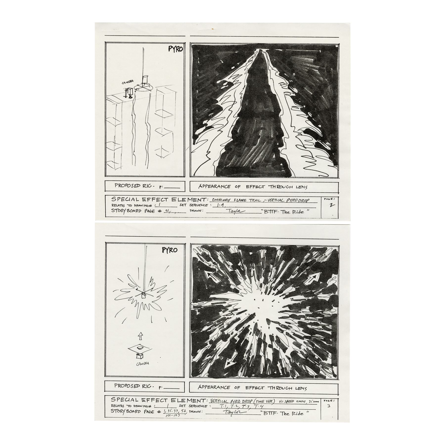 BACK TO THE FUTURE: THE RIDE (1991-2007) - Douglas Trumbull Collection: Technical Drawings, Effects Storyboards, and Paperwork - Technical drawings, effects storyboards, and paperwork from the Back to the Future: The Ride at Universal Orlando theme park. Based on the Back to the Future films, the ride serves as a mini-sequel to Back to the Future Part III.