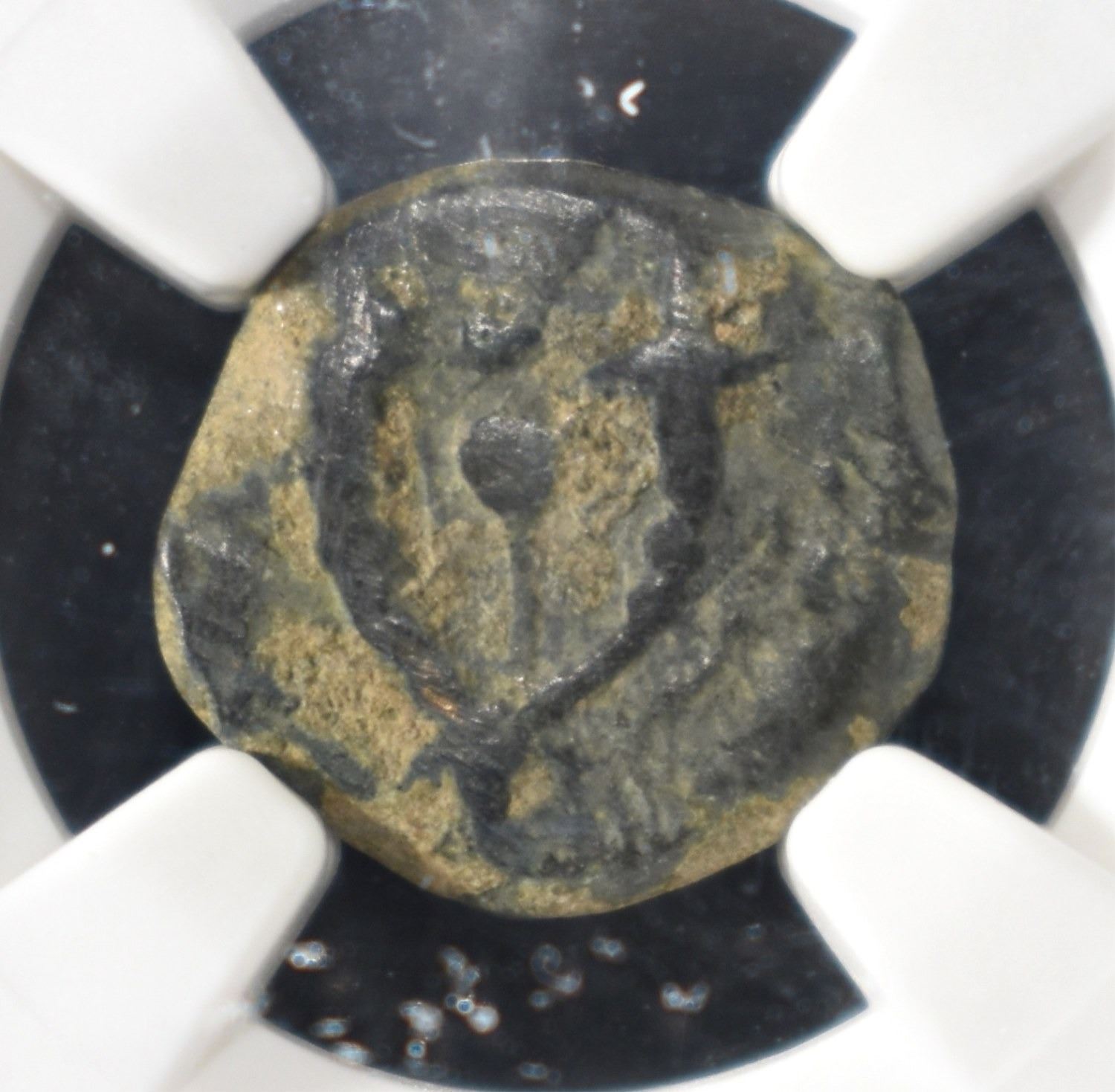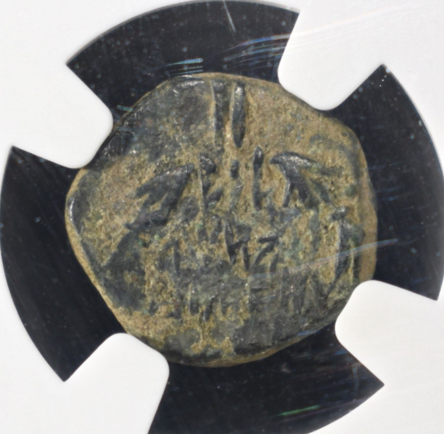 135-37 BC HASMONEAN KINGS, AE PRUTAH NGC CH F