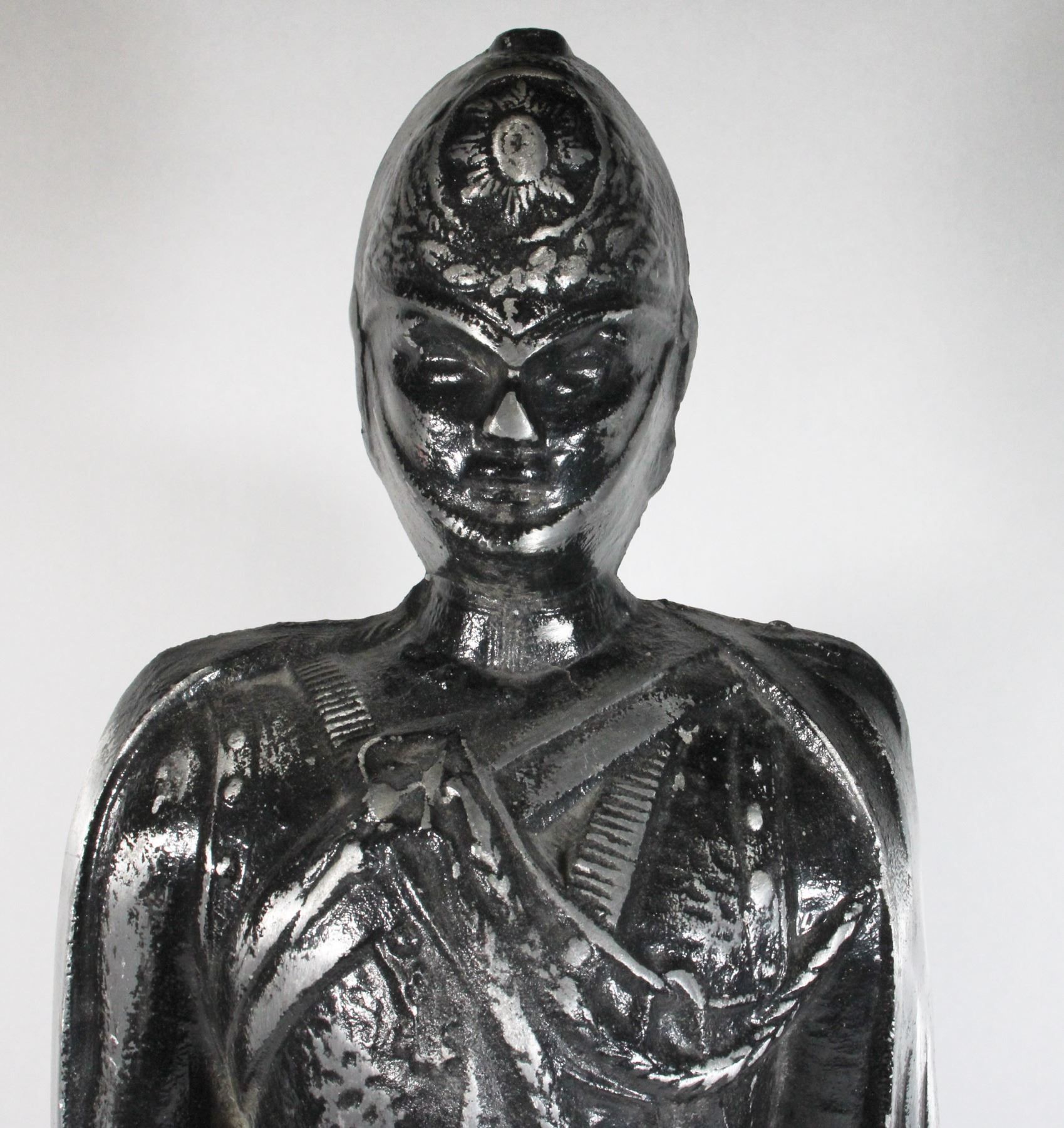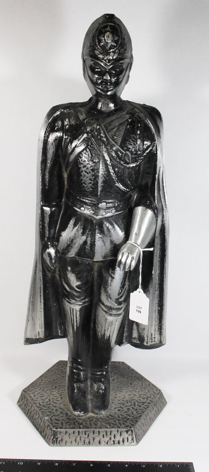 BRITISH SOLDIER MADE IN JAPAN METAL STATUE, HAS MOVEABLE HAND FOR HOLDING SMALL SIGN ADVERTISING STATUE 1960'S 1970'S 1900'S 20TH CENTURY