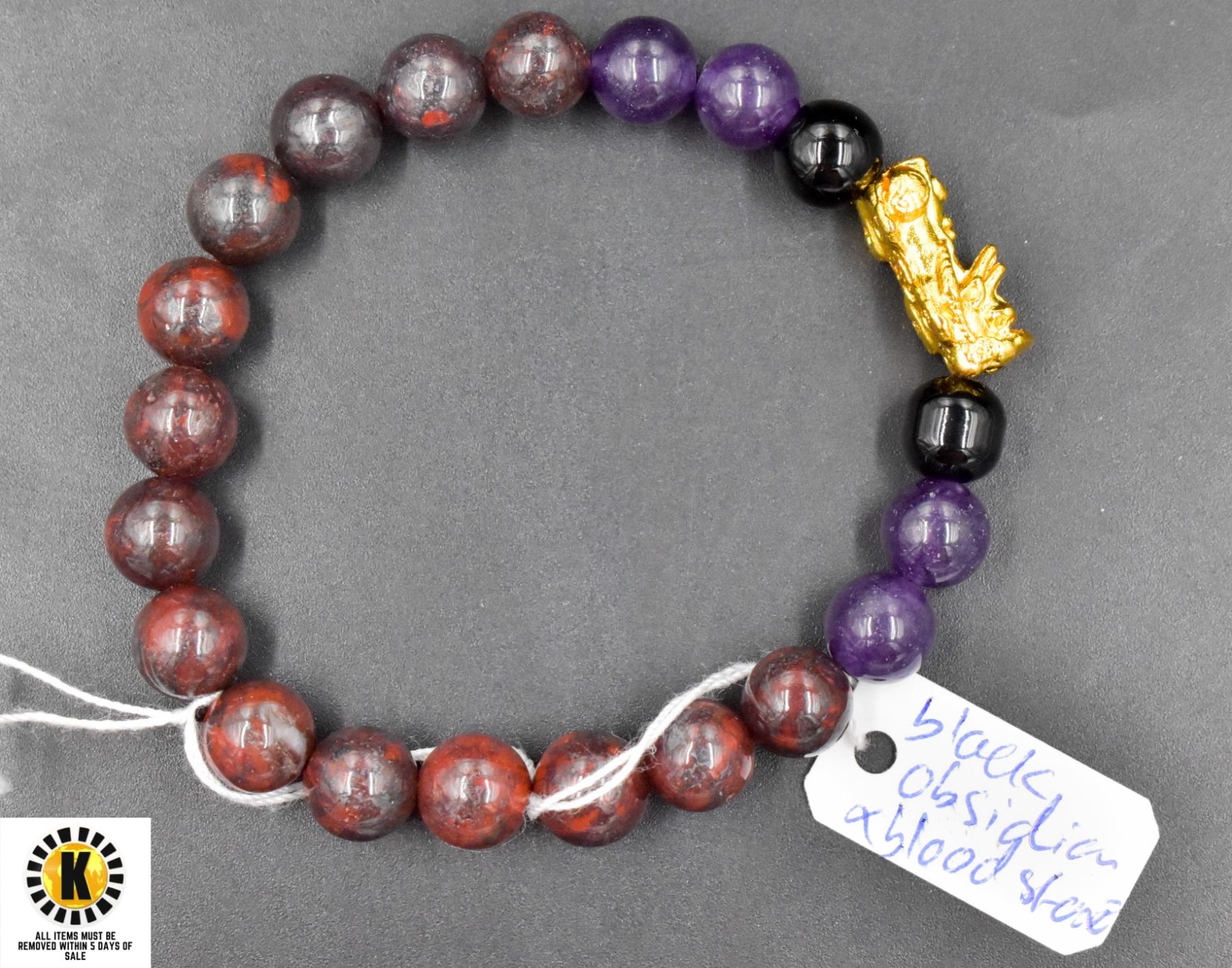 #135-NATURAL BLOOD STONE,AMETHYST,BLACK OBSIDIAN