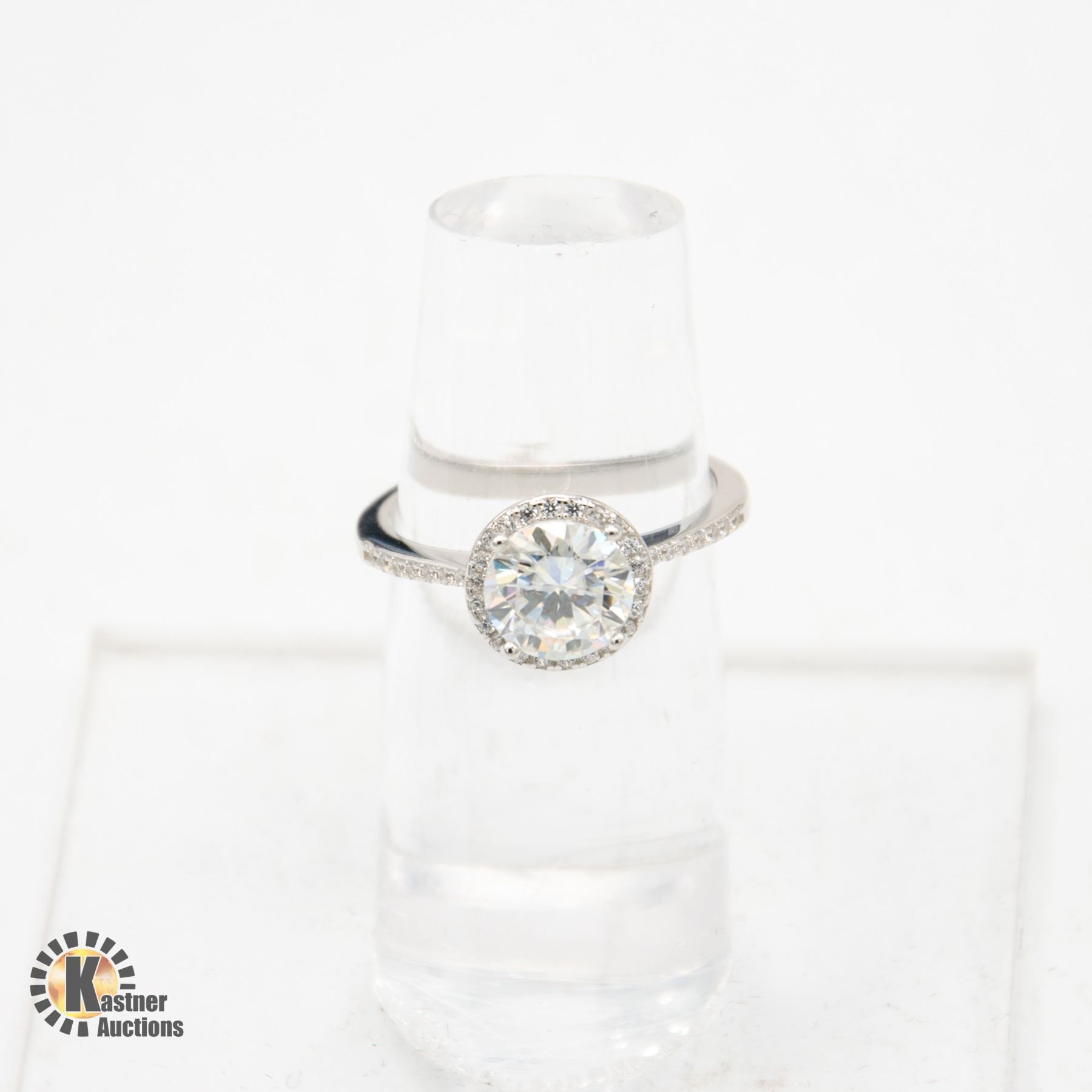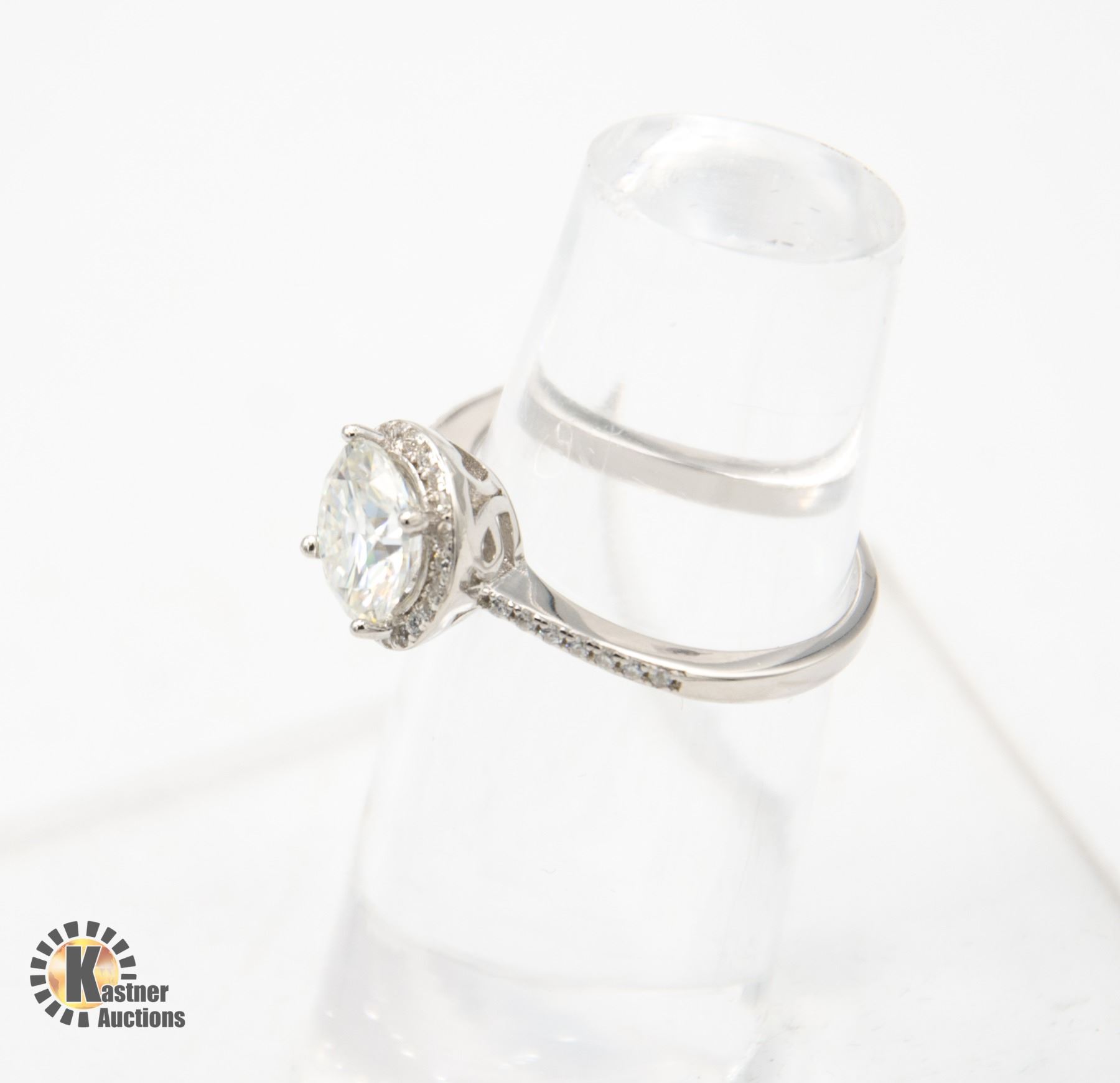 MOISSANITE STONE VVS D COLOR SURROUNDED BY ROUND HALO SET IN 925 SILVER RING SIZE ADJUSTABLE RETAIL VALUE $1,150.00 COMES WITH GIFT BOX