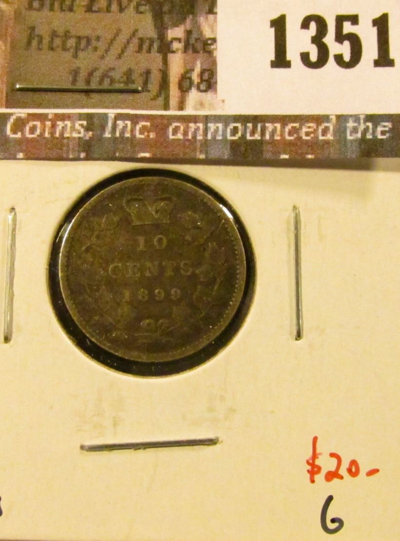 1351 . 1899 large 9s Canada Ten Cents, G, value $20