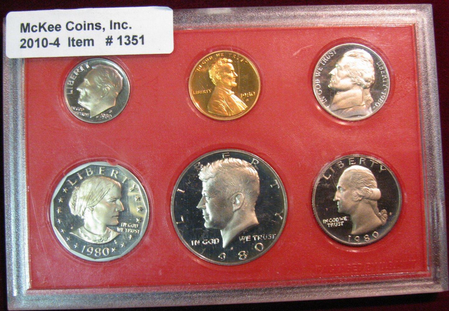 1351. 1980 S U.S. Proof Set in original plastic case. No box. All Cameo Frosted.