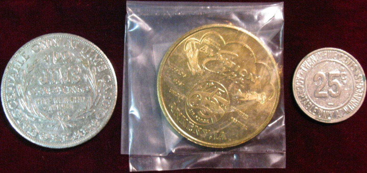 1352. .25c Winnavegas Good For from Sloan, Ia.; 1993 Ankeny Ia. Aviation Medal First Series; & $1 We