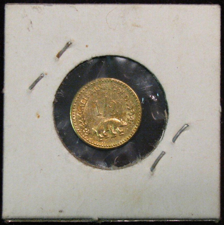 1353. 1854 California Gold 1/2 Round Token. Not a Pioneer fractional gold piece. BU.