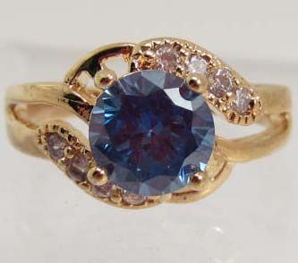 13531 - GOLD PLATED BLUE & WHITE TOPAZ RING - SIZE 7
