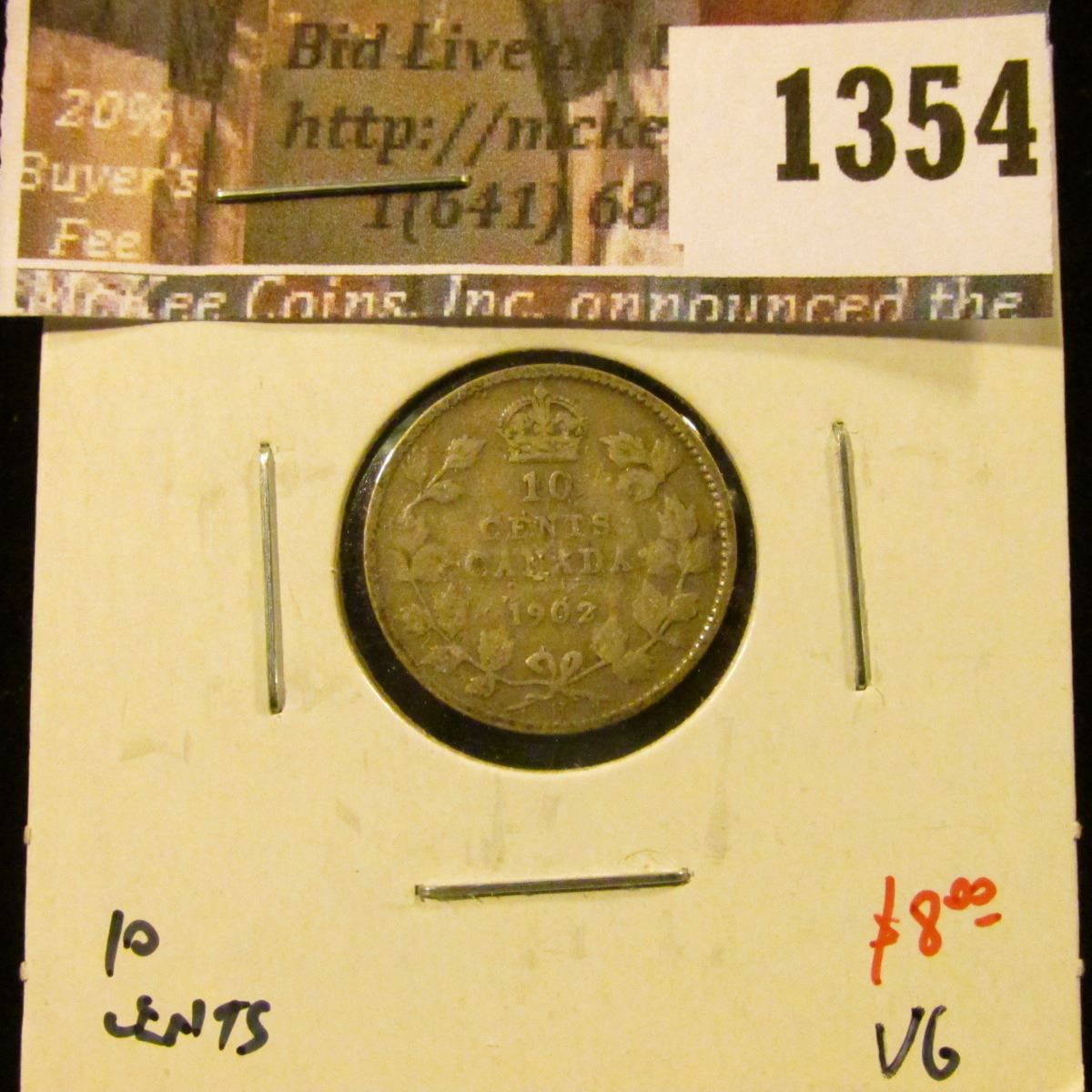1354 . 1902H Canada Ten Cents, VG, value $8