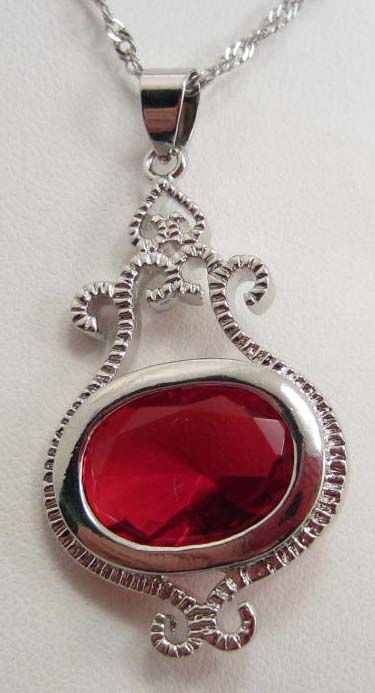 13553 - WHITE GOLD PLATED RUBY PENDANT W/ CHAIN