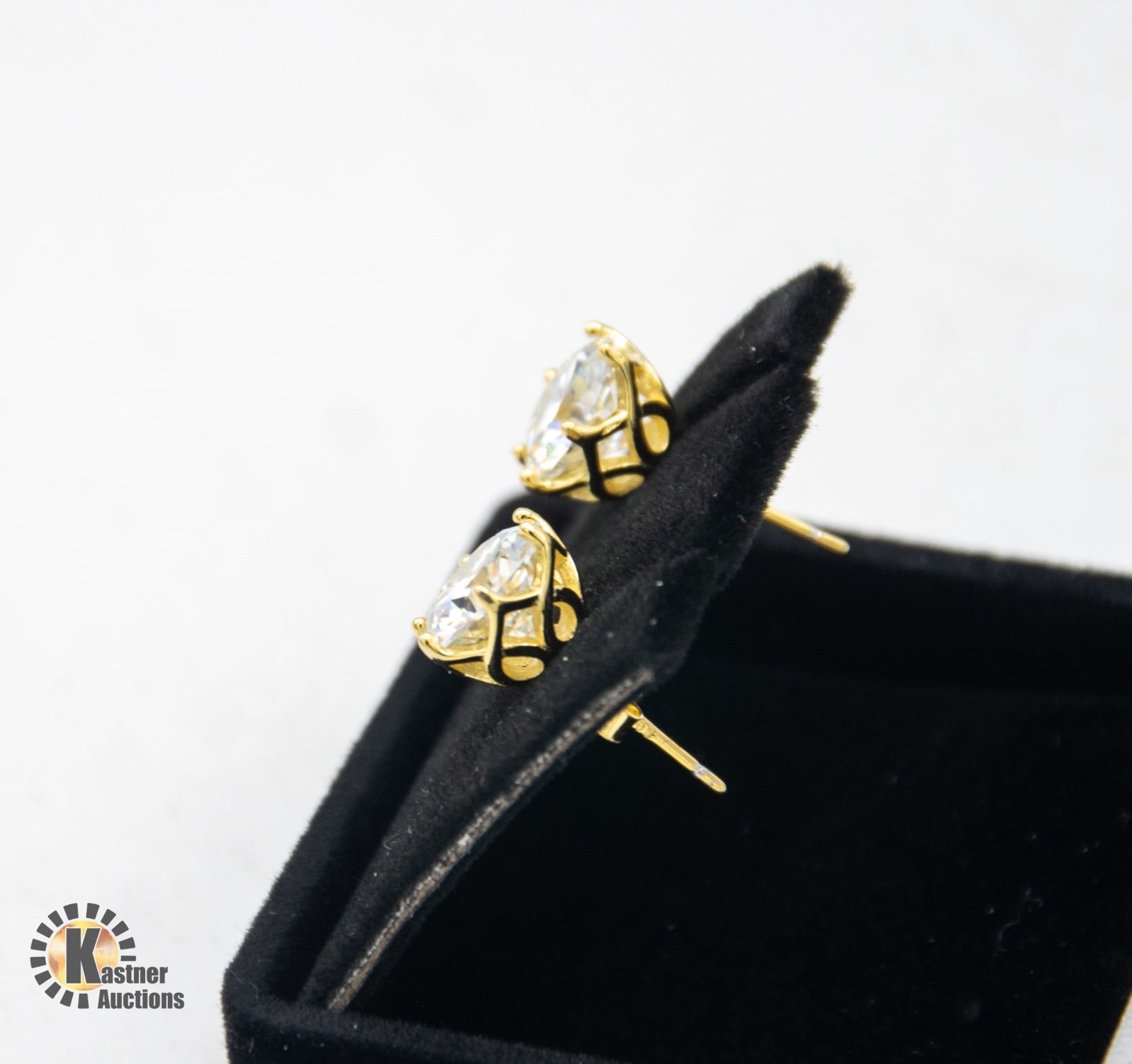 VVS D COLOR SET IN CENTER OF 4 CLAW FILAGREE BASKET HEAD SET IN 925 SILVER EARRINGS WITH GOLD PLATING