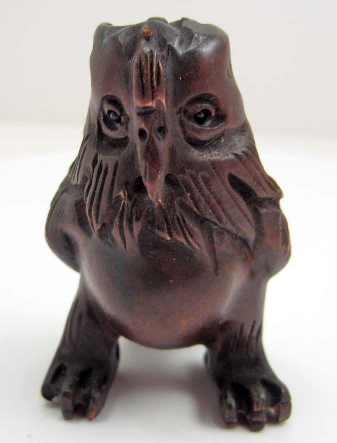 13564 - BOXWOOD OWL NETSUKE FIGURINE