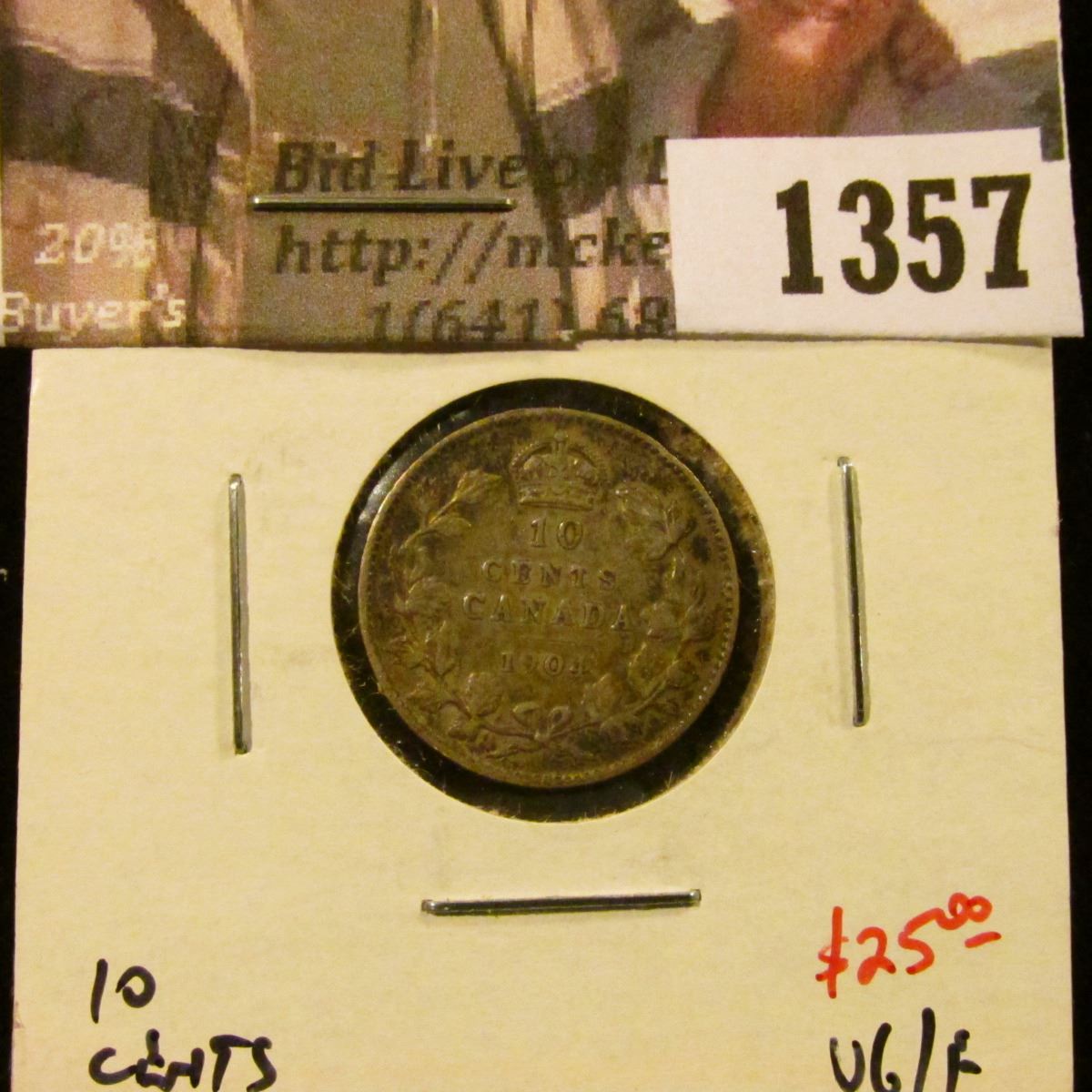 1357 . 1904 Canada Ten Cents, VG/F, value $25