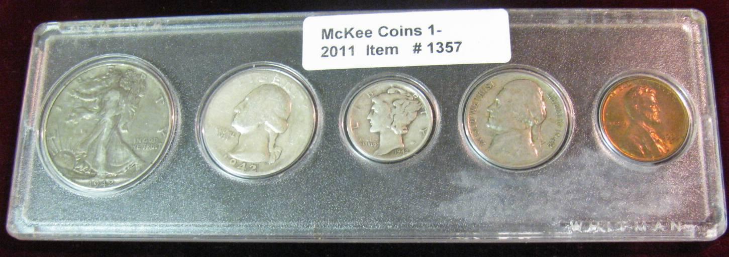 1357. 1955D Cent, 1942 Nickel, Dime, Quarter & Half Set.