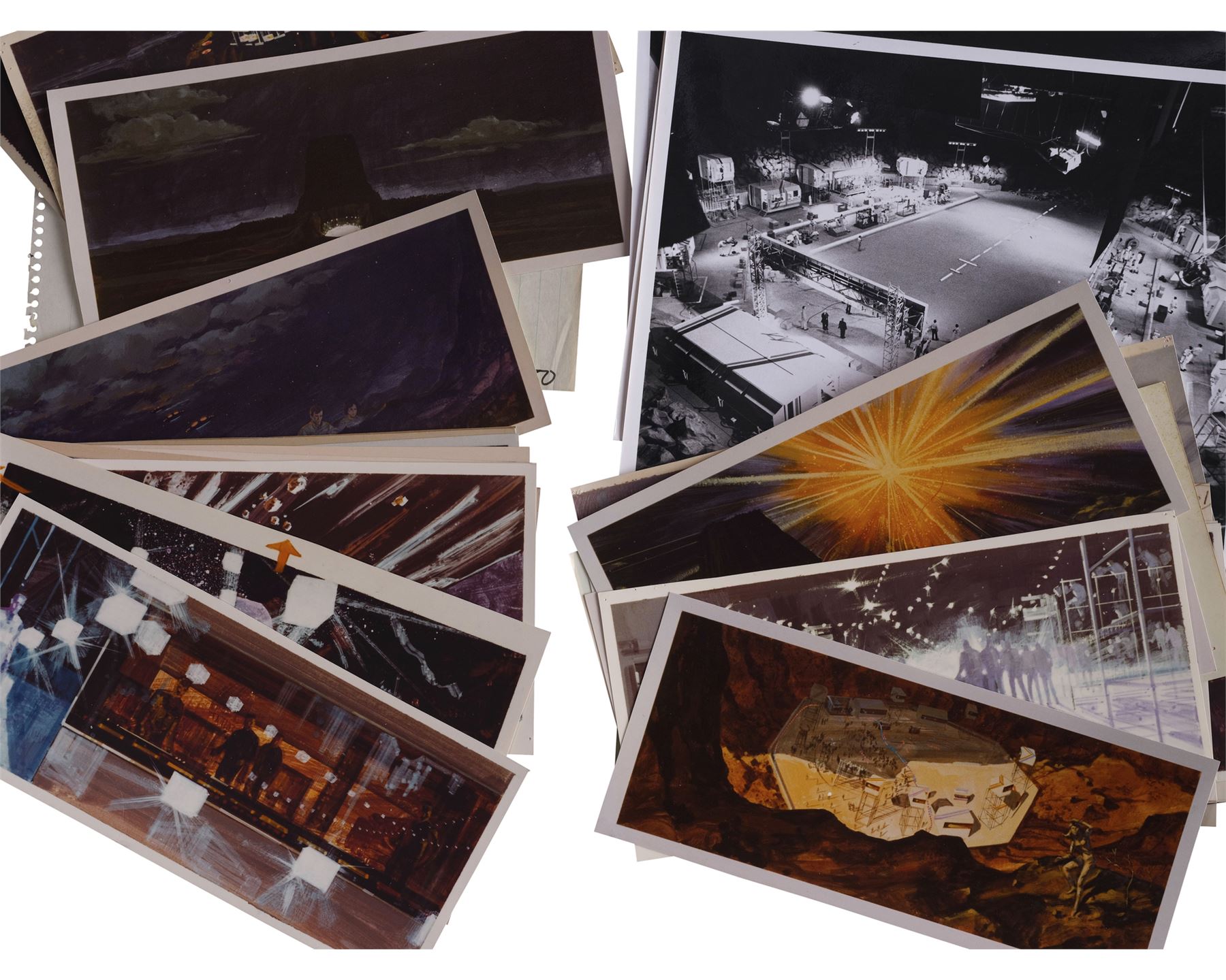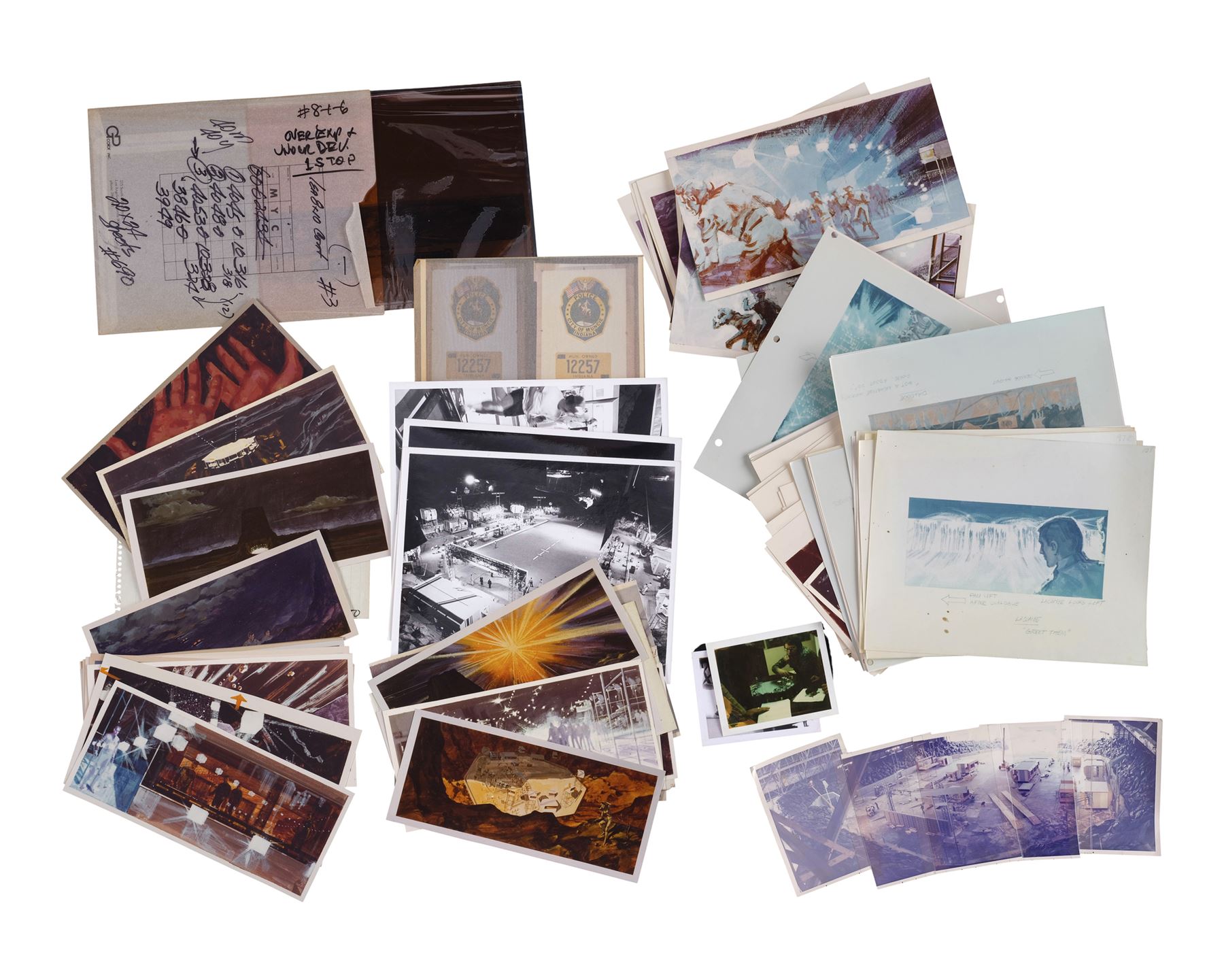 This lot comes from the collection of special photographic effects artist Douglas Trumbull. It consists of 88 printed photos of storyboard illustrations; one transparency page; five color photos attached together creating a panoramic view of the filming site; one handwritten note; and six behind-the-scenes photos. This lot exhibits discoloration, as well as curling to the pages. Dimensions: (largest) 8" x 10" (20.5 cm x 25.5 cm)Visual effects pioneer Douglas Trumbull was born in Los Angeles in 1942. After abandoning architecture for technical drawing and cartooning, his talent for photorealism soon earned him work at Graphic Films, an esteemed Hollywood studio for which he designed groundbreaking cosmic effects for the 1964 New York World's Fair. After seeing Trumbull's work, director Stanley Kubrick hired him to create animations and VFX shots - including the iconic Star Gate sequence - for what would become his seminal masterpiece 2001: A Space Odyssey. From that film's success, Trumbull became one of the industry's most trusted photographic effects experts, designing and producing legendary screen moments in such sci-fi landmarks as Close Encounters of the Third Kind, Star Trek: The Motion Picture, and Blade Runner, all three of which earned him Academy Award& reg; nominations. In addition to directing the cult classics Silent Running and Brainstorm, Trumbull later received a Scientific and Engineering Award for his high-speed photography process Showscan in 1993, one of two specialty awards given to him by the Academy of Motion Picture Arts and Sciences before his death in 2022. 60 years since he first made his mark on global cinema, Propstore today celebrates Douglas Trumbull by presenting a selection of rare memorabilia from his personal collection to the public.