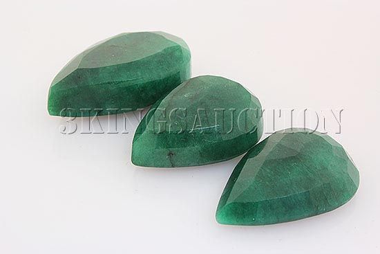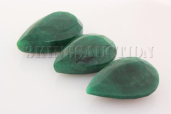 136.22ctw Faceted Loose Emerald Beryl Gemstone Lot of 3 **|**|** Mix Sizes Pear Shape Faceted Emerald Beryl Loose Gemstone ; MSRP: $1000