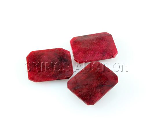 136.33ctw RubyEmeraldCut LooseGemstone lot of 3 **|**|** Mix Sizes 25-26x20-21x6-7mm Natural Ruby Gemstone Flat Emerald Shape lot of 3 ; MSRP: $500