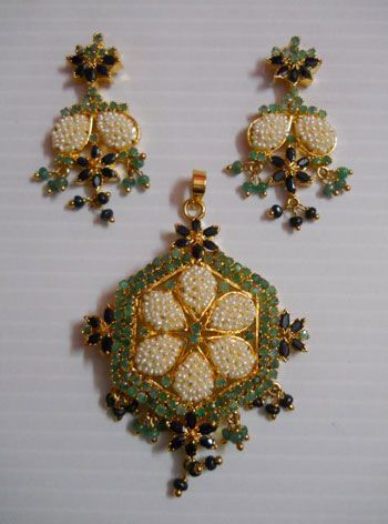 136.90 CTW GOLD PLATED PEARL/EMERALD/SAPPHIRE PENDANT A **|**|** 136.90 CTW GOLD PLATED PEARL/EMERALD/SAPPHIRE PENDANT AND EARRING SET STERLING SILVER ; MSRP: $1375