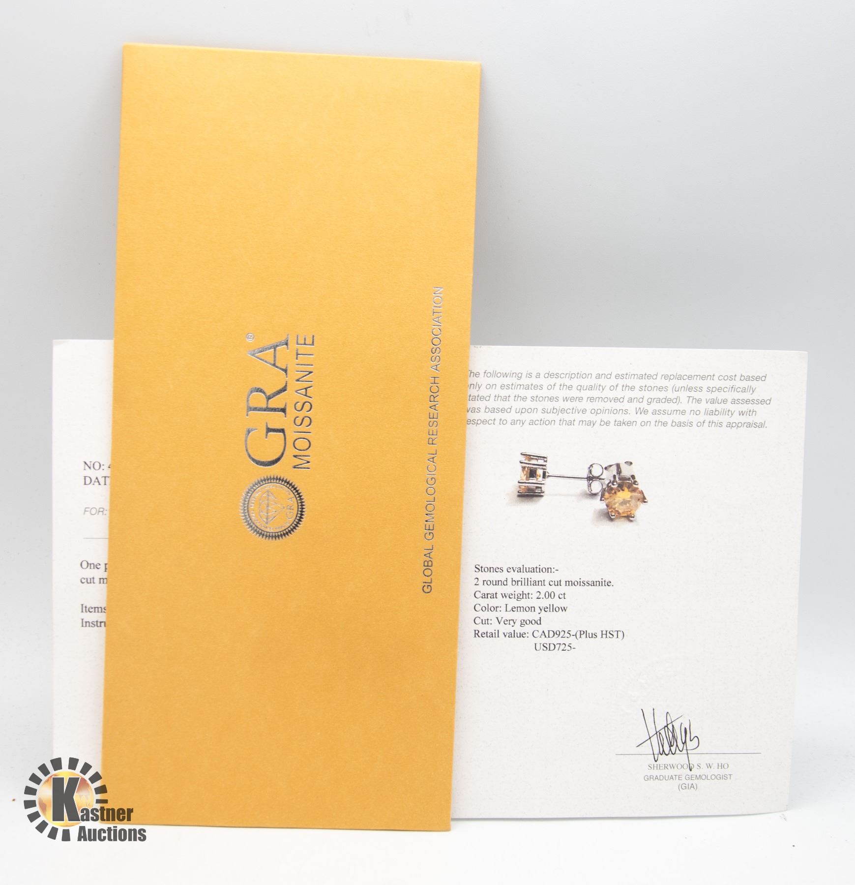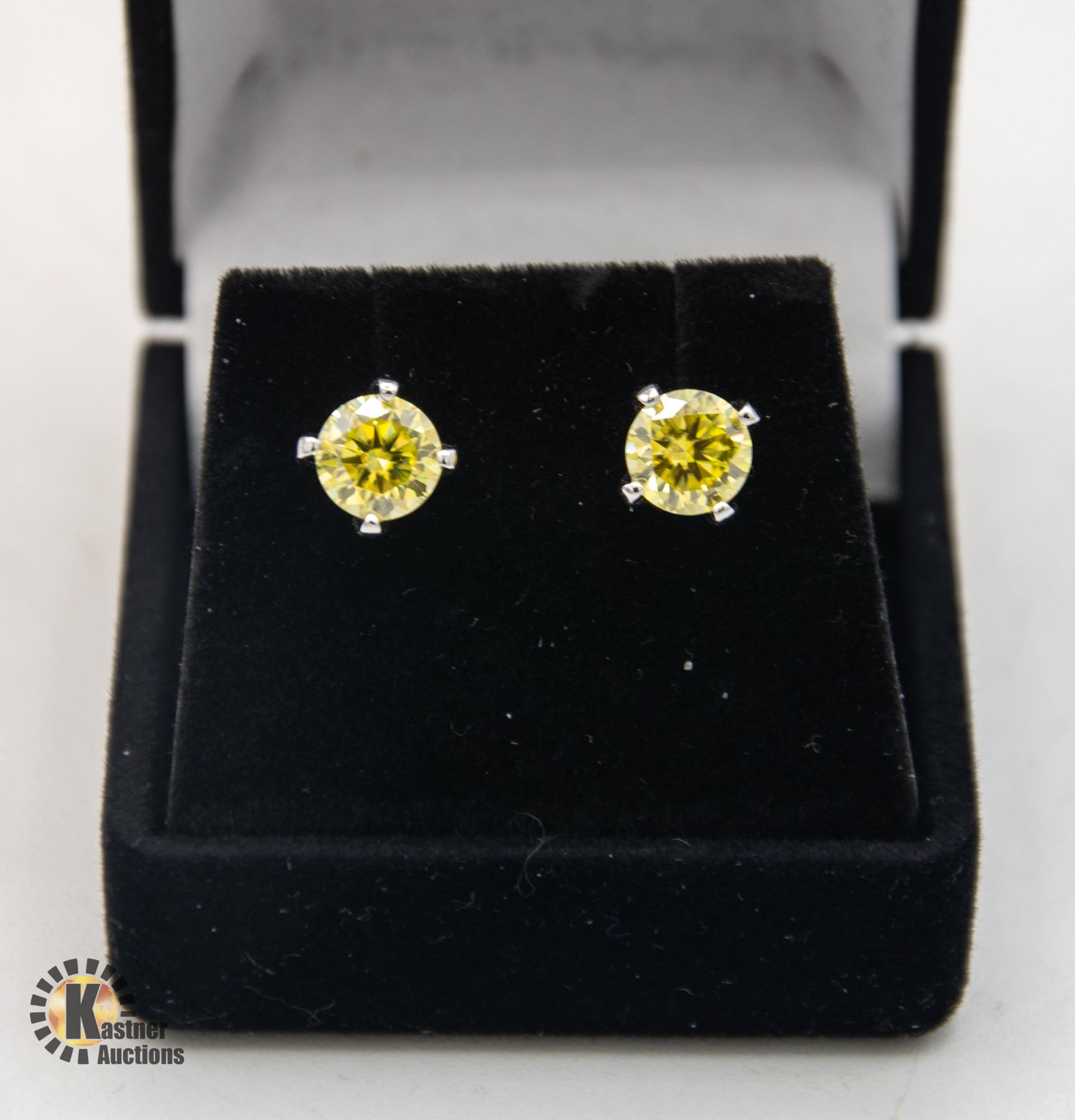 MOISSANITE STONES VVS LEMON YELLOW COLOR SET IN CENTER OF 4 CLAW HEAD SET IN 925 SILVER EARRINGS RETAIL VALUE $925.00