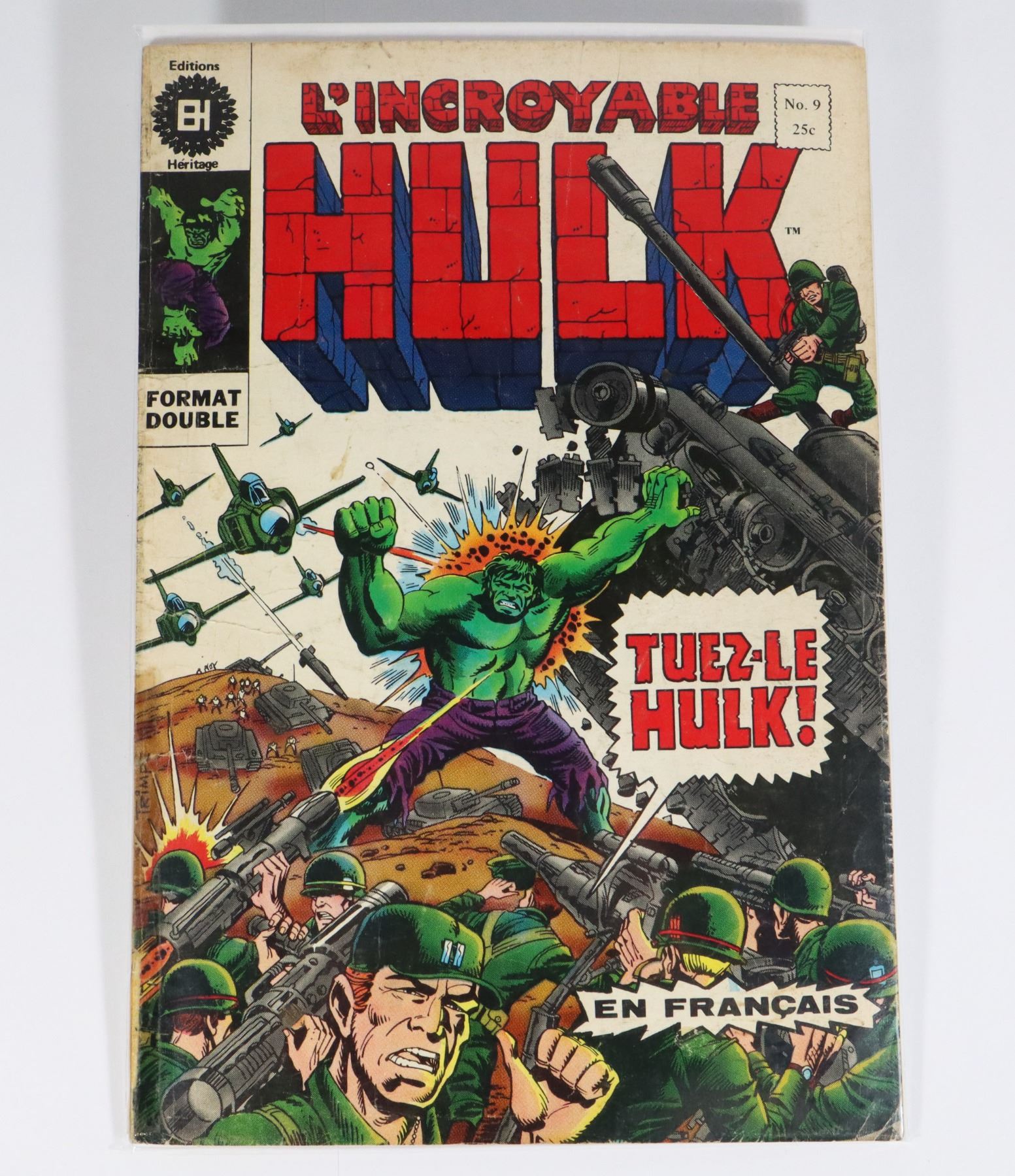 L'INCROYABLE HULK #9 LES ÉDITIONS HÉRITAGE QUEBEC 1969 HEAVY WEAR COVER/SPINE***ITEM(S) LOCATED IN LETHBRIDGE ALBERTA, FREE TRANSPORT TO OUR EDMONTON OFFICE AVAILABLE. WORLDWIDE SHIPPING IS AVAILABLE***