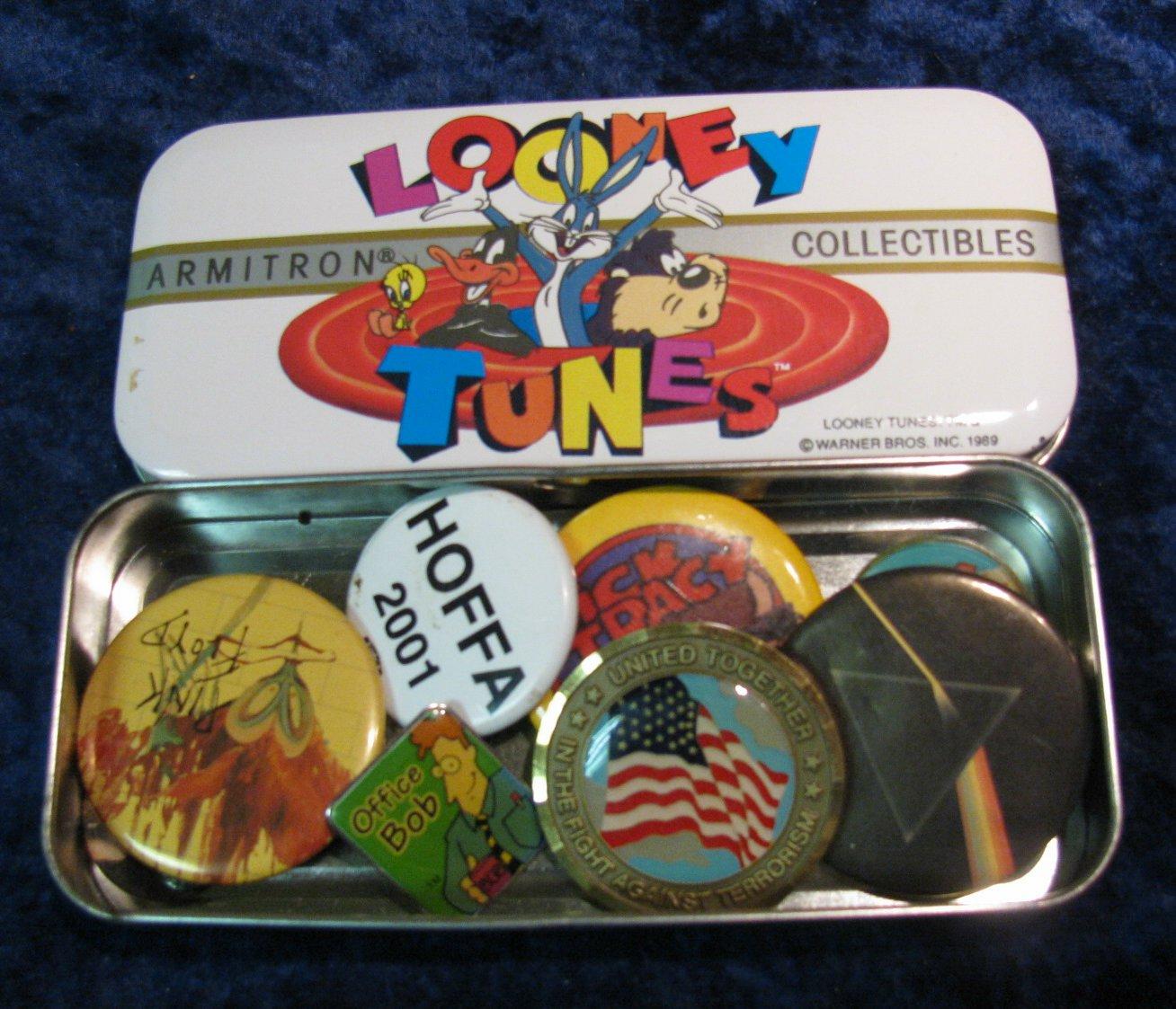 1362. (8) Medals & Pinbacks in Looney Tunes Tin Box.