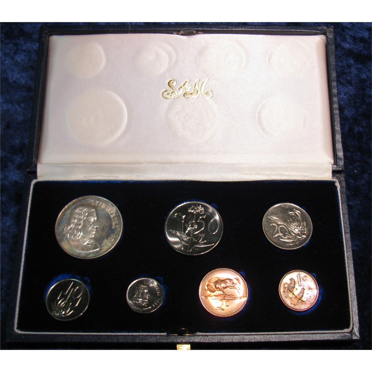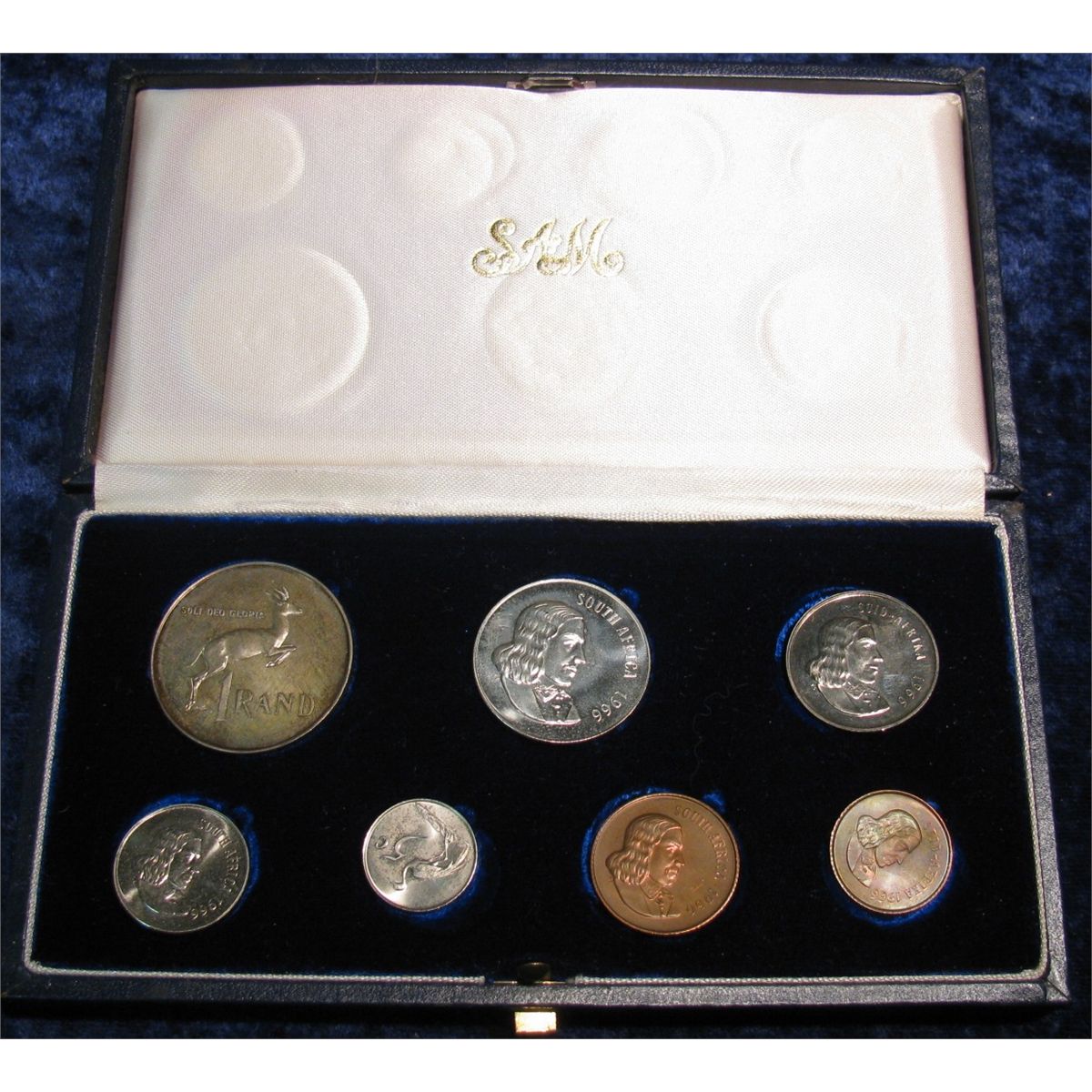 1363. 7-Piece 1966 South African Proof Set with Silver Rand depicting Springbok. In original felt-lined case of issue.