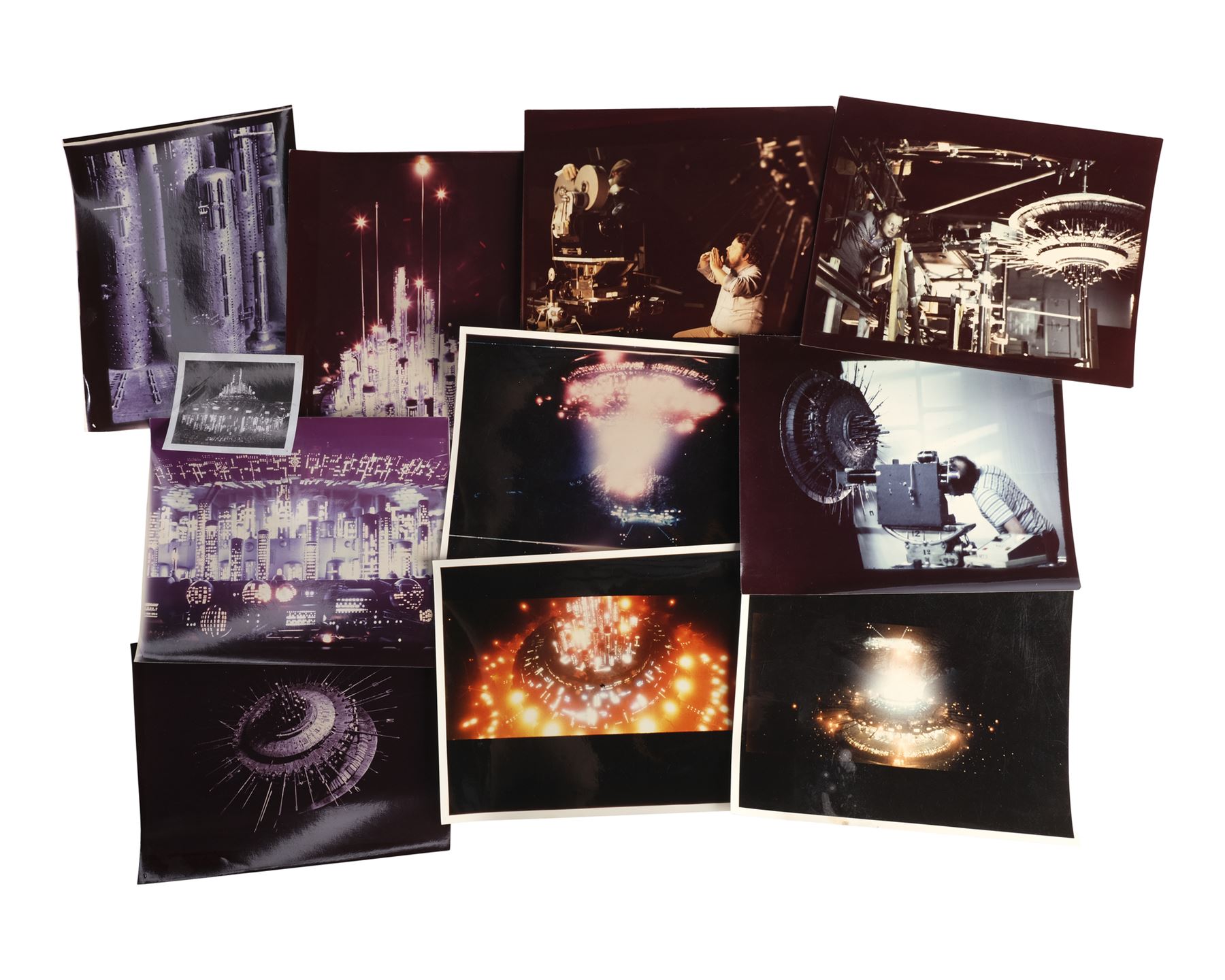 These 43 large color-printed photographs, from the collection of special photographic effects artist Douglas Trumbull, depict imagery from the film as well as shots from behind-the-scenes. They exhibit some wear from age, including bending and scuffs. Dimensions: (largest) 16" x 20" (40.75 cm x 51 cm)Visual effects pioneer Douglas Trumbull was born in Los Angeles in 1942. After abandoning architecture for technical drawing and cartooning, his talent for photorealism soon earned him work at Graphic Films, an esteemed Hollywood studio for which he designed groundbreaking cosmic effects for the 1964 New York World's Fair. After seeing Trumbull's work, director Stanley Kubrick hired him to create animations and VFX shots - including the iconic Star Gate sequence - for what would become his seminal masterpiece 2001: A Space Odyssey. From that film's success, Trumbull became one of the industry's most trusted photographic effects experts, designing and producing legendary screen moments in such sci-fi landmarks as Close Encounters of the Third Kind, Star Trek: The Motion Picture, and Blade Runner, all three of which earned him Academy Award& reg; nominations. In addition to directing the cult classics Silent Running and Brainstorm, Trumbull later received a Scientific and Engineering Award for his high-speed photography process Showscan in 1993, one of two specialty awards given to him by the Academy of Motion Picture Arts and Sciences before his death in 2022. 60 years since he first made his mark on global cinema, Propstore today celebrates Douglas Trumbull by presenting a selection of rare memorabilia from his personal collection to the public.