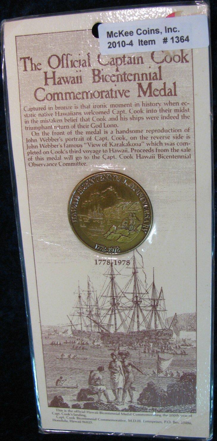 1364. 1778-1978 Official Captain Cook Hawaii Bicentennial Commemorative Medal in original holder as issued.