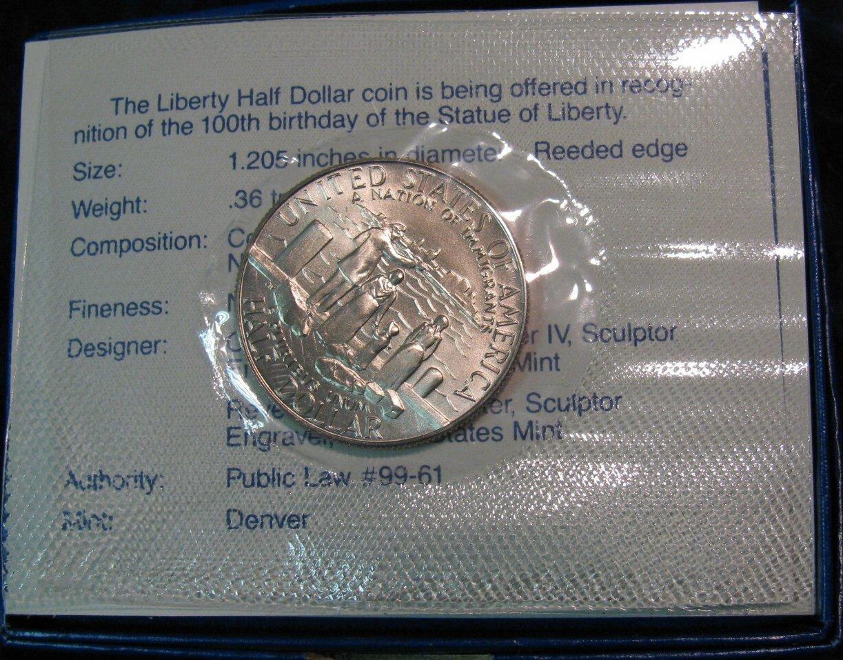 1367. 1986 D Statue of Liberty Commemorative Half Dollar. In original box as issued.
