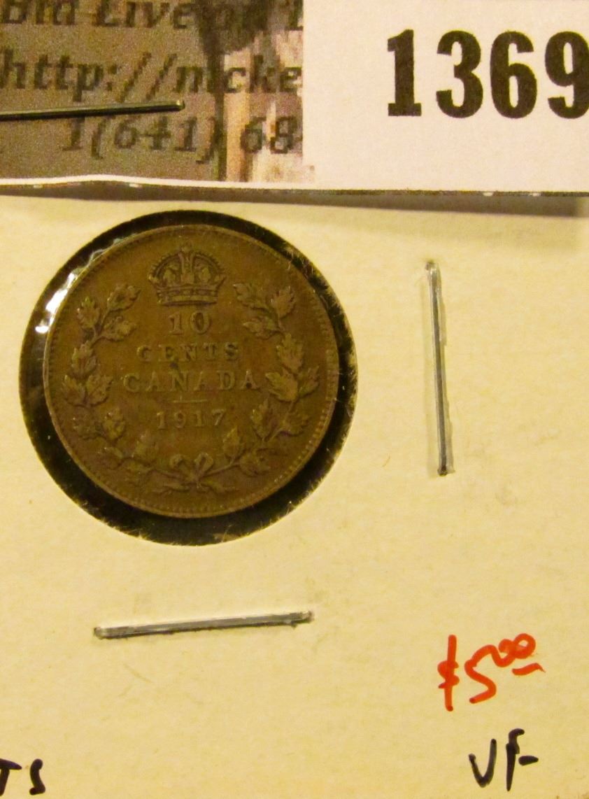 1369 . 1917 Canada Ten Cents, VF, value $5