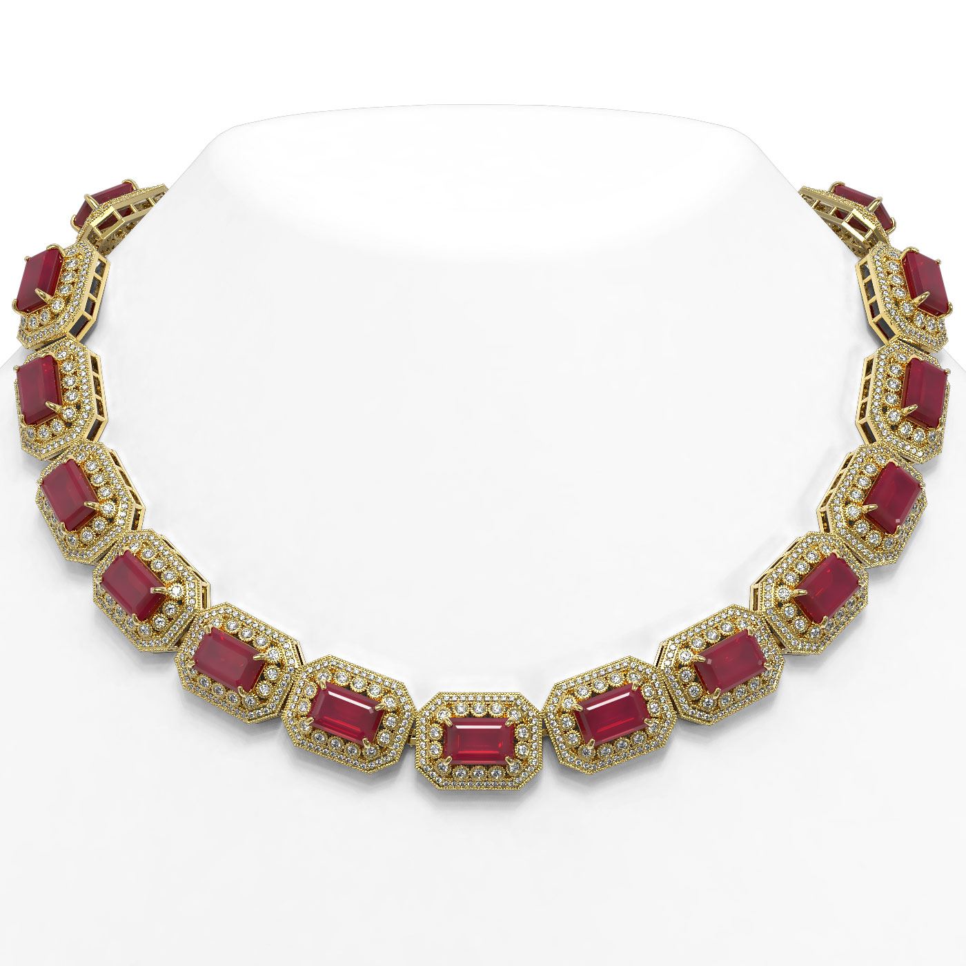 SKU: 43465 ---- 137.65 ctw Certified Ruby & Diamond Victorian Necklace 14K Yellow Gold