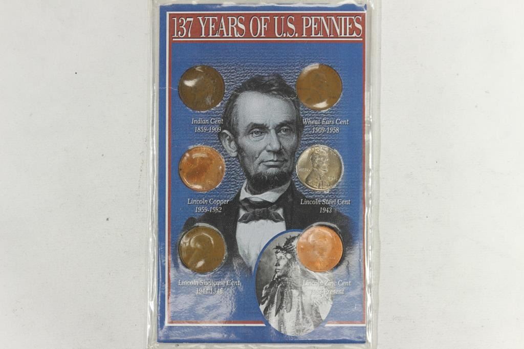INDIAN HEAD CENT AND 5 DIFFERENT STYLES OF LINCOLN CENTS