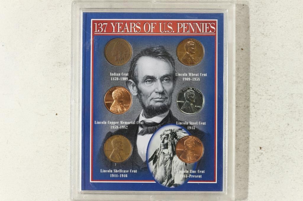 INDIAN HEAD CENT, 3 WHEAT CENTS INCLUDING A STEEL CENT AND 2 MEMORIAL CENTS