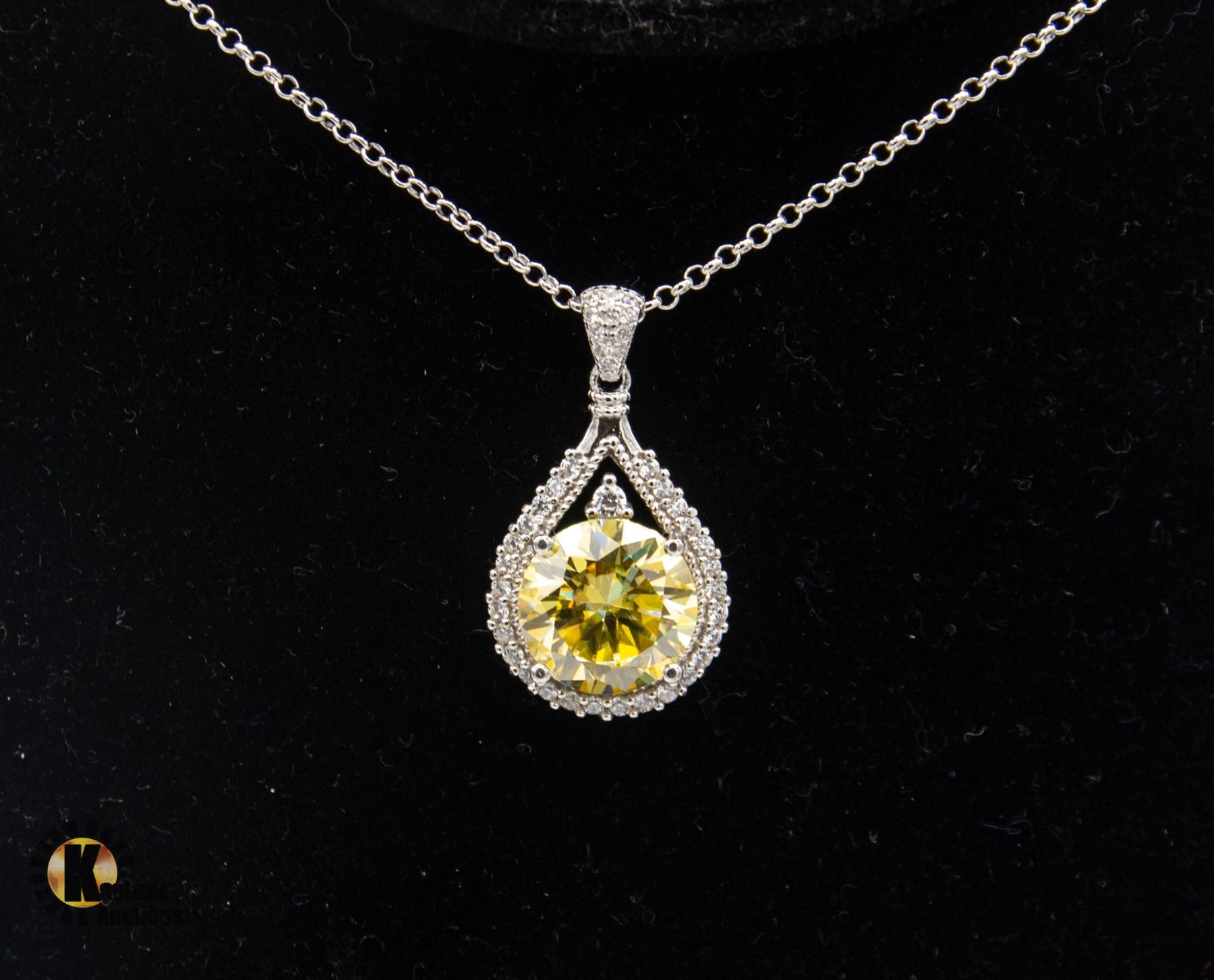 CUT MOISSANITE STONE VVS LEMON YELLOW COLOR SURROUNDED BY TEAR DROP HALO WITH 29 ROUND BRILLIANT CUT CUBIC ZIRCONIA WITH MORE SET IN BALE SET IN 925 SILVER PENDANT COMES WITH GIFT BOX