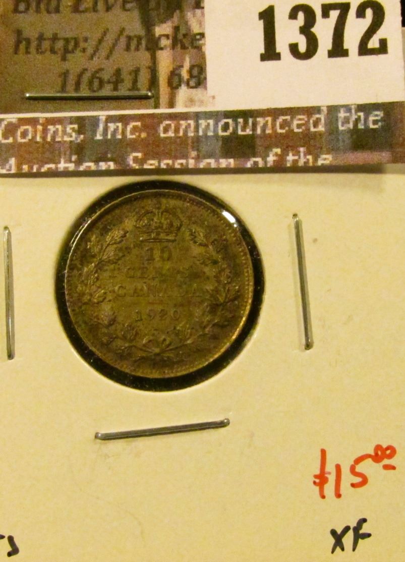 1372 . 1920 Canada Ten Cents, XF, value $15