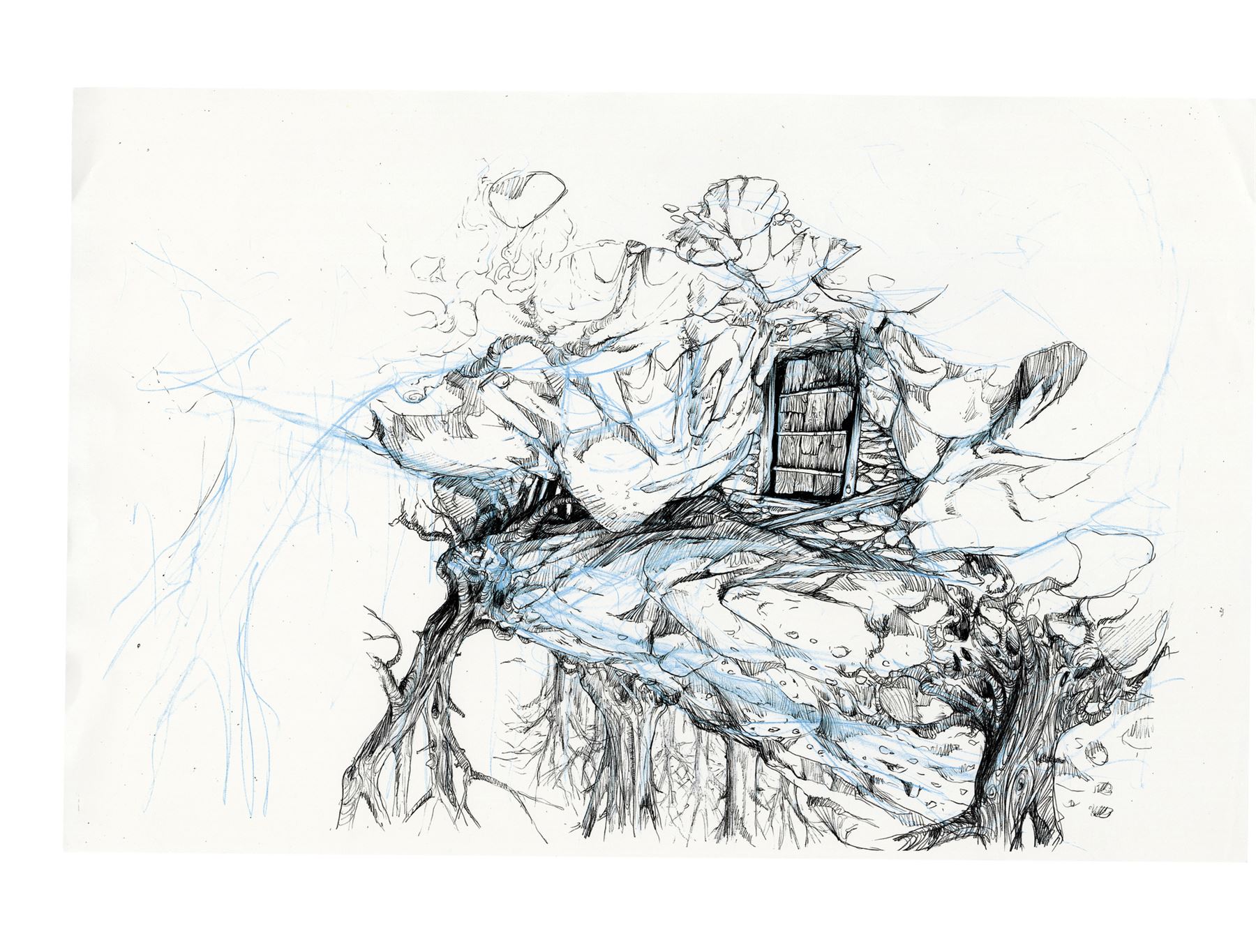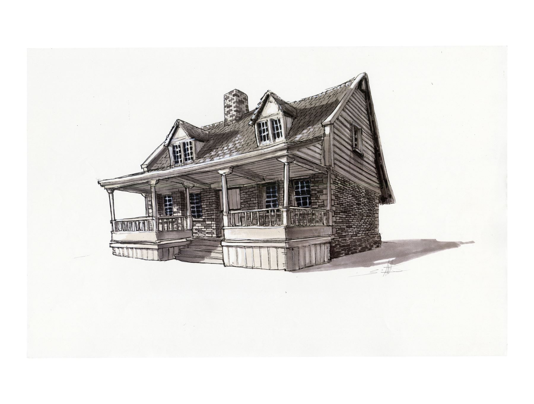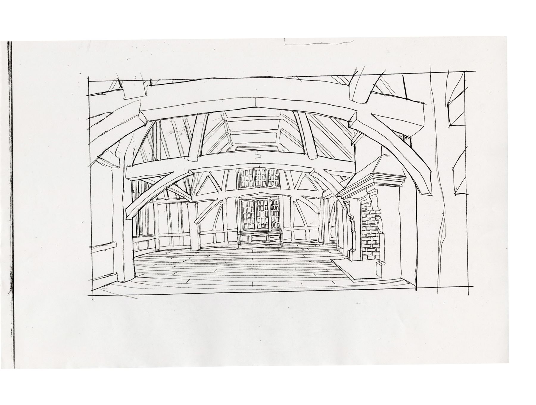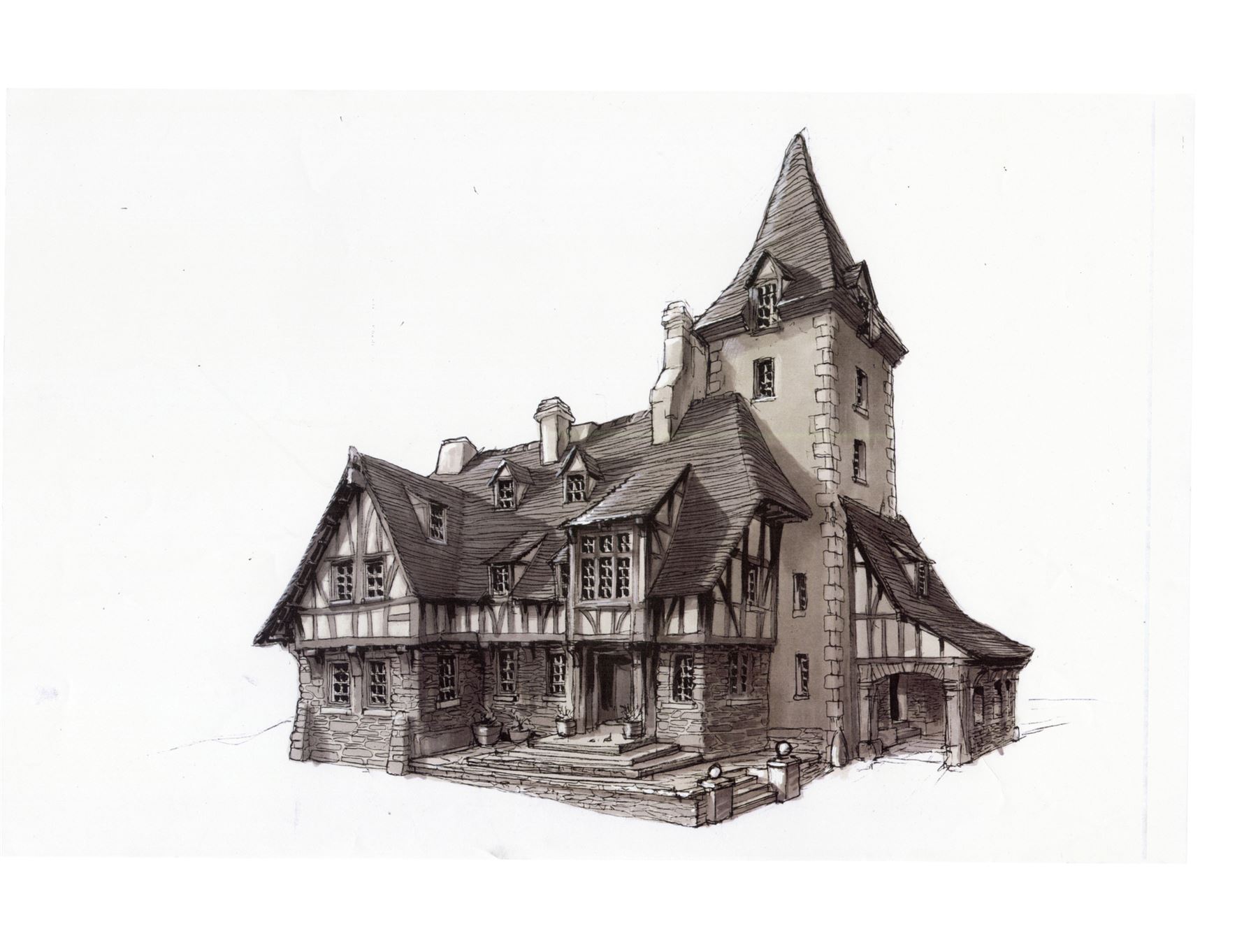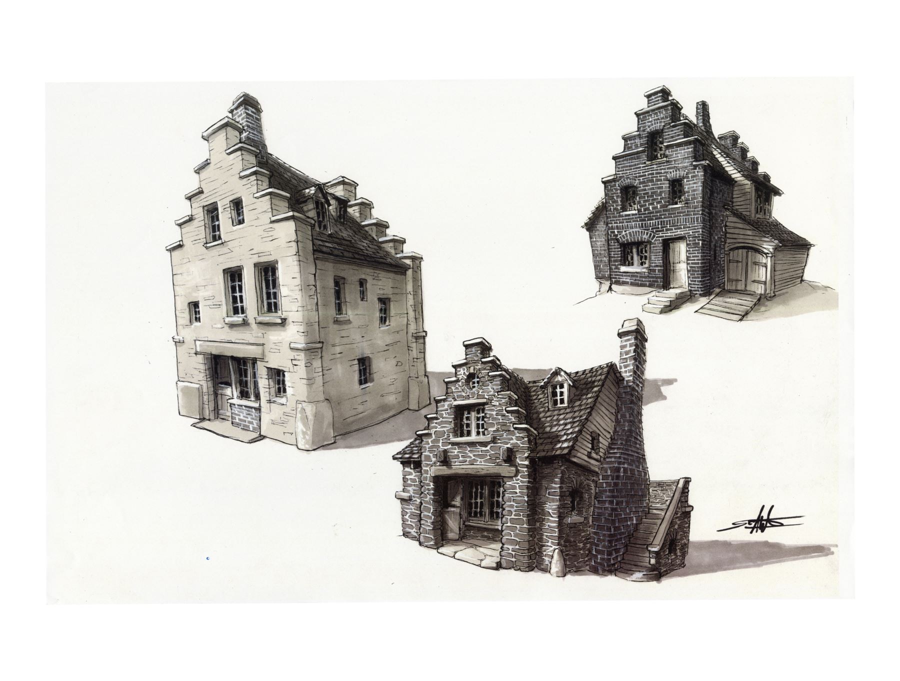 SLEEPY HOLLOW (1999) - Set Concept Artwork Prints - A set of concept artwork prints from Tim Burton's Sleepy Hollow. Created by concept illustrator Simon Murton, this lot consists of 44 concept artwork pieces with 16 images created as line drawings. These designs include Lady Van Tassel's attic, the Crone's cave interior and entrance, Baltus Van Tassel's study, and various village homes. Some of these designs feature Murton's printed signature. This lot exhibits minor discoloration. Dimensions: (each) 11" x 17" (28 cm x 43.25 cm)