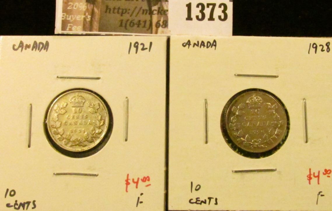 1373 . (2) Canada Ten Cents 1921 & 1928, both F, value for pair $8