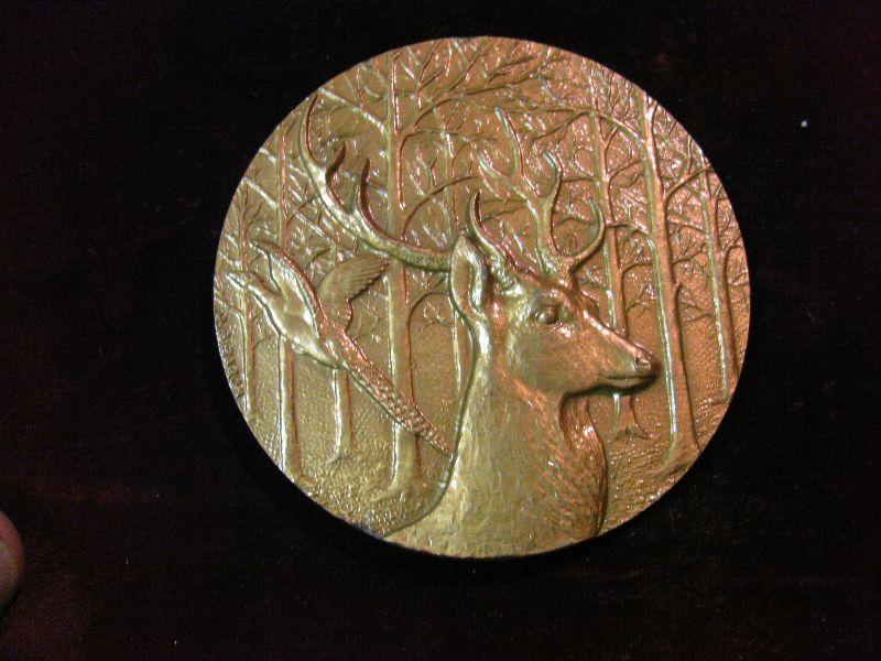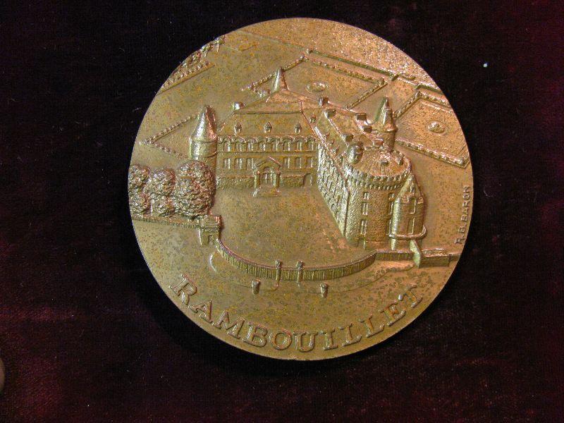 1373. Large 3" Bronze Medal With Stag and Castle Rambouillet.