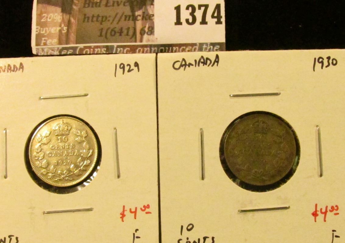 1374 . (2) Canada Ten Cents 1929 & 1930, both F, value for pair $8