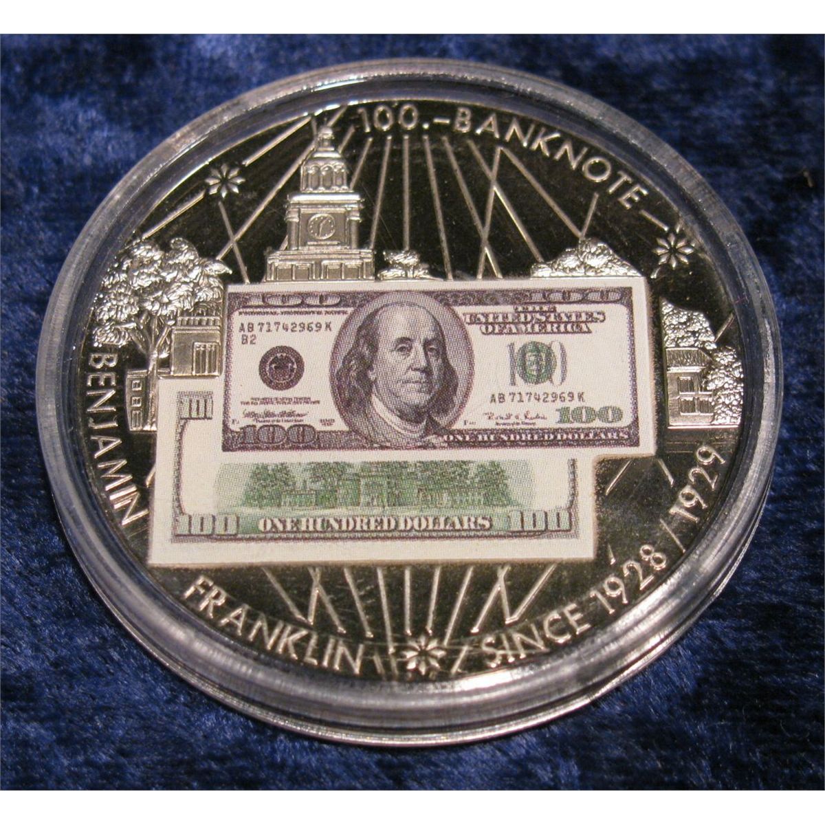 1374. Benjamin Franklin $100 Banknote Coin. 39mm. Encapsulated.