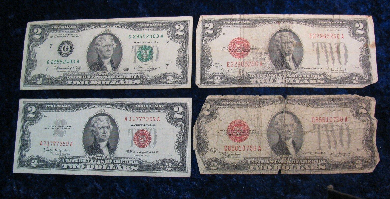 1375. (4) U.S. Two Dollar Notes 1928 D, 28 G, 63, 76, Circulated.