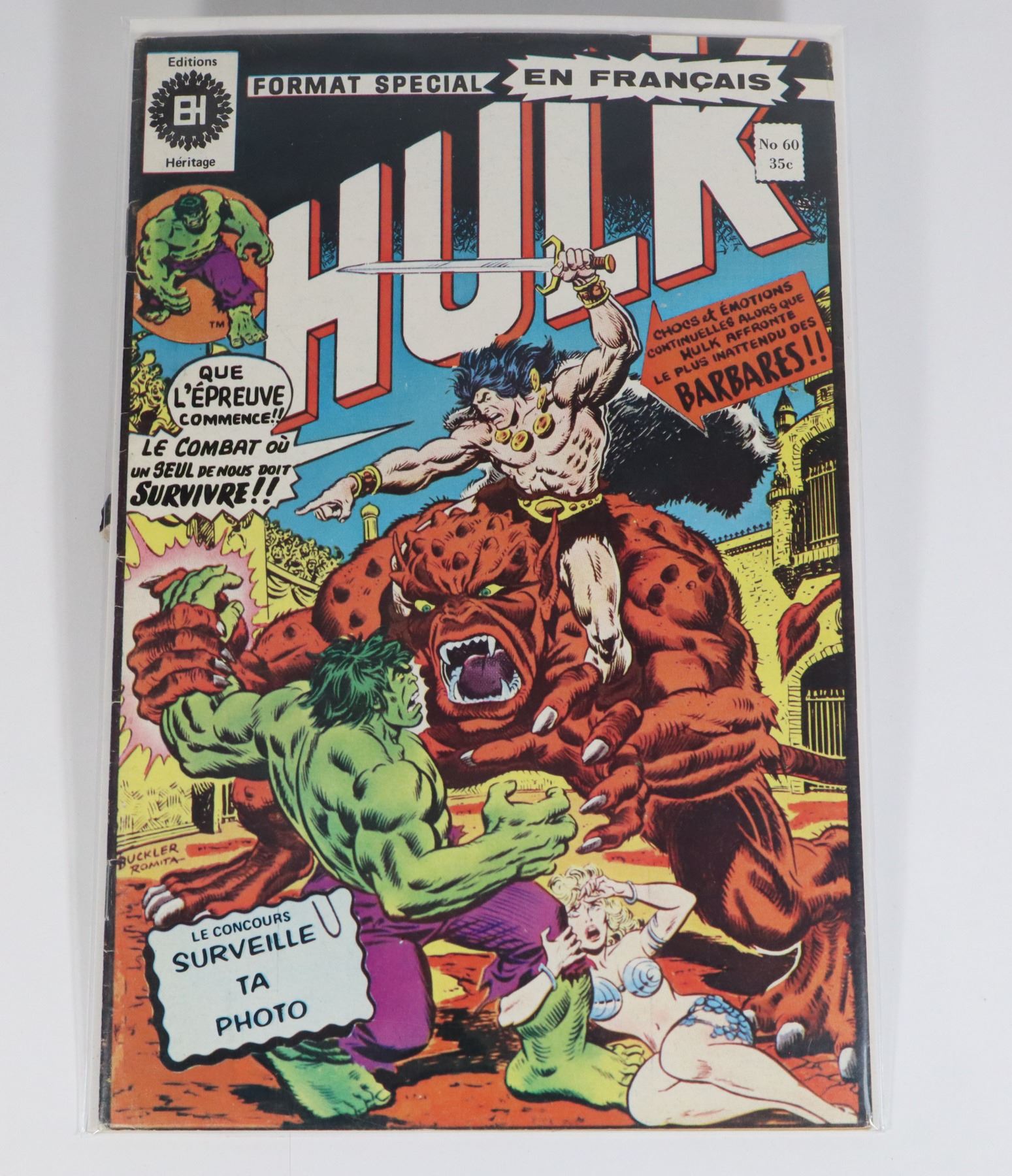 L'INCROYABLE HULK #60 LES ÉDITIONS HÉRITAGE QUEBEC***ITEM(S) LOCATED IN LETHBRIDGE ALBERTA, FREE TRANSPORT TO OUR EDMONTON OFFICE AVAILABLE. WORLDWIDE SHIPPING IS AVAILABLE***