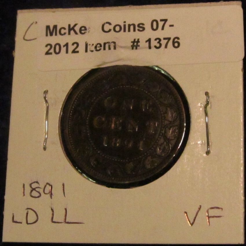 1376. 1891 Large date, large leaves Variety Canada Large Cent. VF 20.