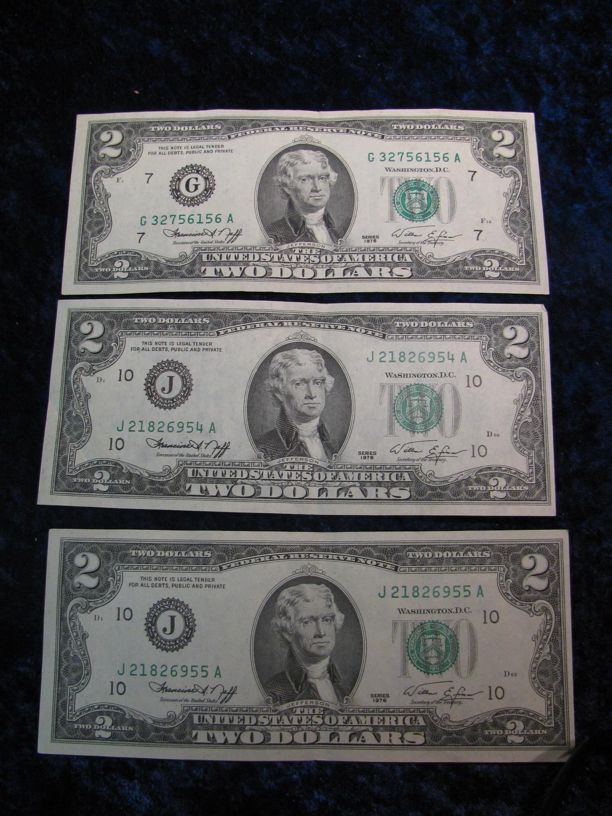 1376. (3) 1976 U.S. Two Dollar FRN Notes. AU