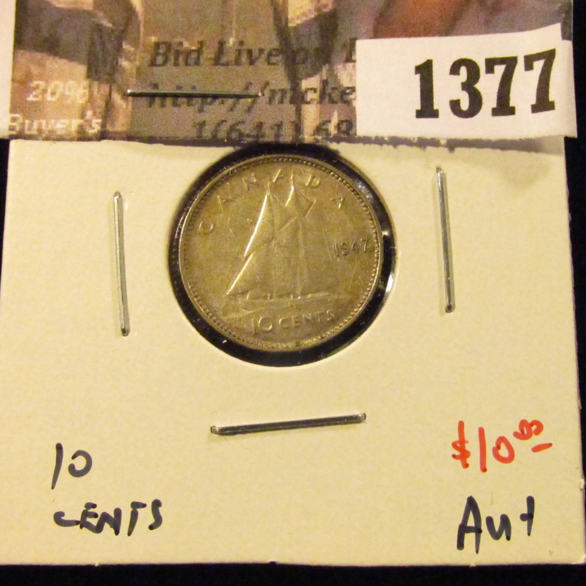 1377 . 1947 ML Canada Ten Cents, AU+, value $10