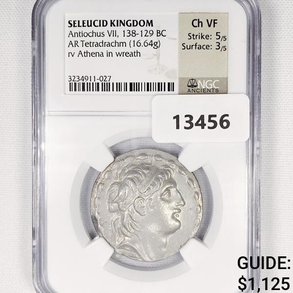 138-129 BC Seleucid KD AR Tetradrachm NGC-ChVF